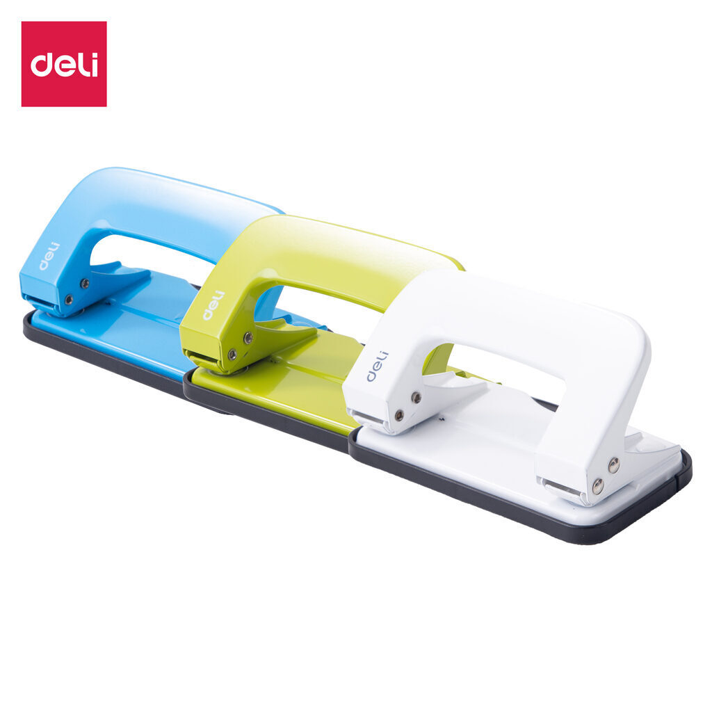 Дырокол металлический Deli обеспечивает легкое и точное пробивание бумаги. Дырокол - это важный и необходимый предмет для комфортной работы в офисе и дома. Он позволяет аккуратно перфорировать документы, чтобы подшить их в папку с двумя и четырьмя кольцами или в скоросшиватель. Пробивает до 10 листов плотностью 80 г/кв.м., два отверстия диаметром 5,5 мм. Цельнометаллический корпус обеспечивает большую долговечность. Имеется вместительный контейнер для конфетти. Выполнен дырокол в 3-х ярких тонах: голубом, салатовом, белом.