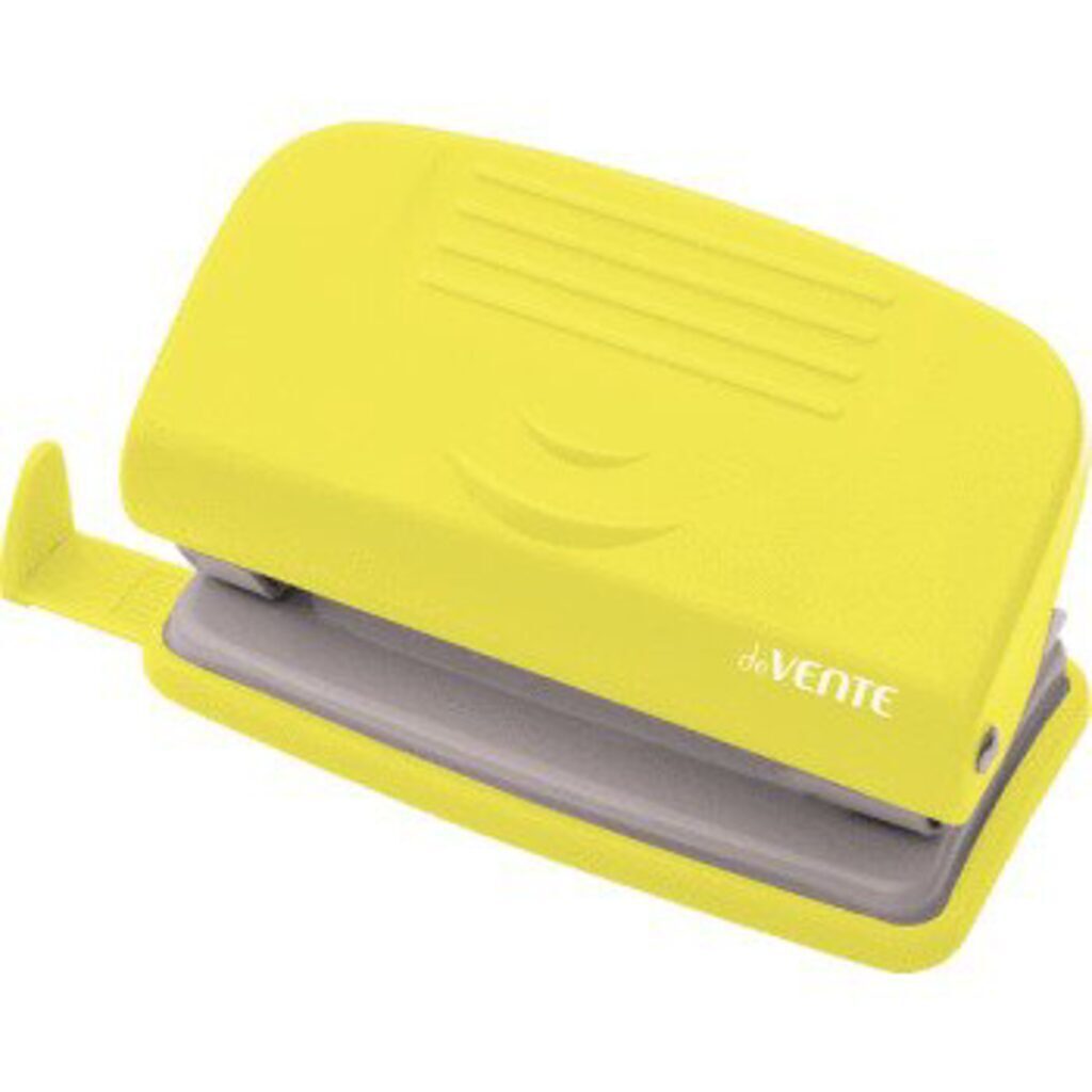 Дырокол deVENTE 10 лист, пластик, линейка, желтый НЕОН