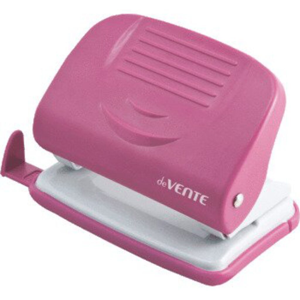 Дырокол deVENTE 20 лист, пластик, линейка, розовый НЕОН