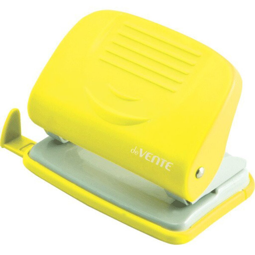 Дырокол deVENTE 20 лист, пластик, линейка, желтый НЕОН