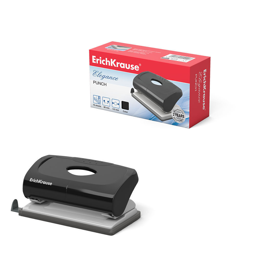 Дырокол позволяет перфорировать документы для последующей подшивки. Корпус изготовлен из пластика, механизм - из высококачественной стали. Пробивная мощность дырокола - до 10 листов. Дырокол оснащен пластиковым контейнером для бумажных конфетти, дно легко открывается, позволяя быстро избавиться от конфетти. Пластиковая основа дырокола не царапает поверхность стола. Линейка-ограничитель позволяет зафиксировать бумагу на нужном расстоянии.