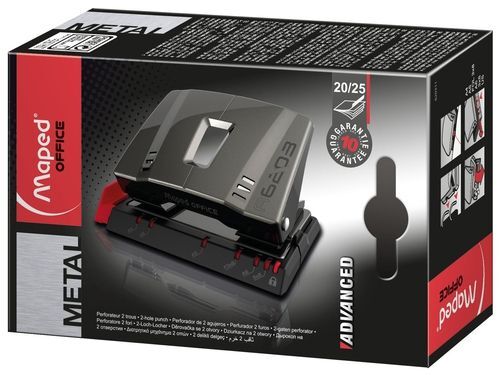 Дырокол MAPED сделан в эксклюзивном дизайне в стиле хай-тек. Быстрое и точное пробивание обеспечат центровочные метки на корпусе.Является суперпрочным благодаря полностью металлическому корпусу и механизму. Пробивает до 25 листов плотностью70 г/м2. Выдвижная линейка-ограничитель выполнена в контрастном цвете для комфортного использования. Типы форматов бумаги нанесены на корпус и легко считываются. Пробивает как 2, так и 4 отверстия (в 2 приема с помощью деления 3х8 на линейке). Удобный контейнер для конфетти с откидной фронтальной частью. Фиксация крышки в сложенном положении.