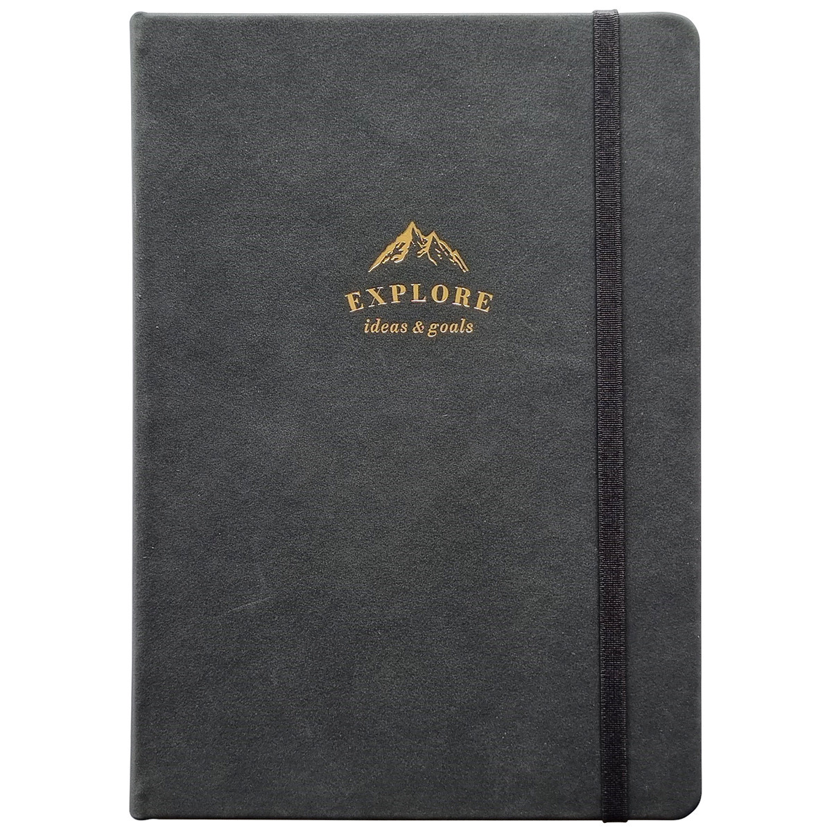Ежедневник дат. 2026г А5 176л., иск.замша, тв.пер. "Explore. Черный" тисн.фольгой, резинка, ляссе