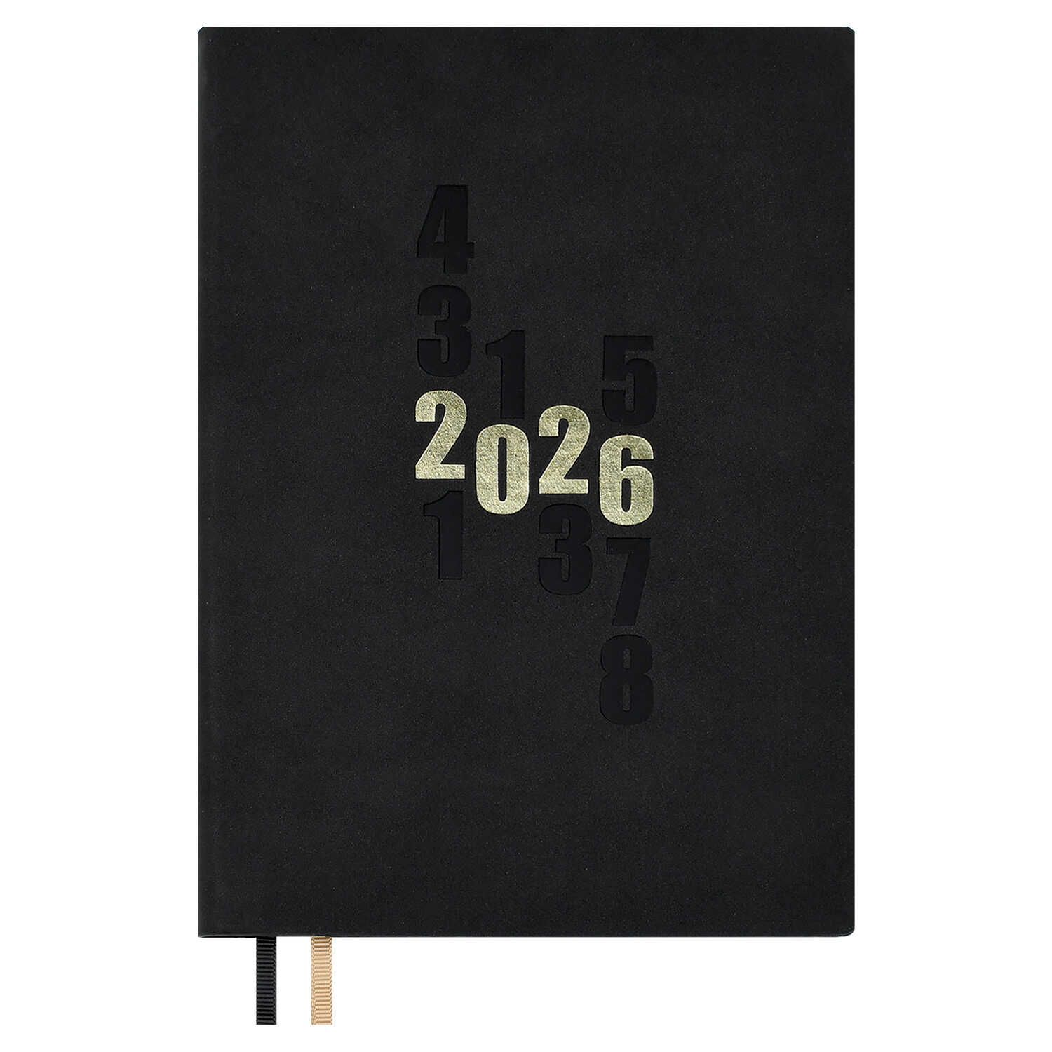 Ежедневник дат. 2026г А5 176л., кожзам, мягк.пер. "Замша черный" тисн.фольгой, ляссе