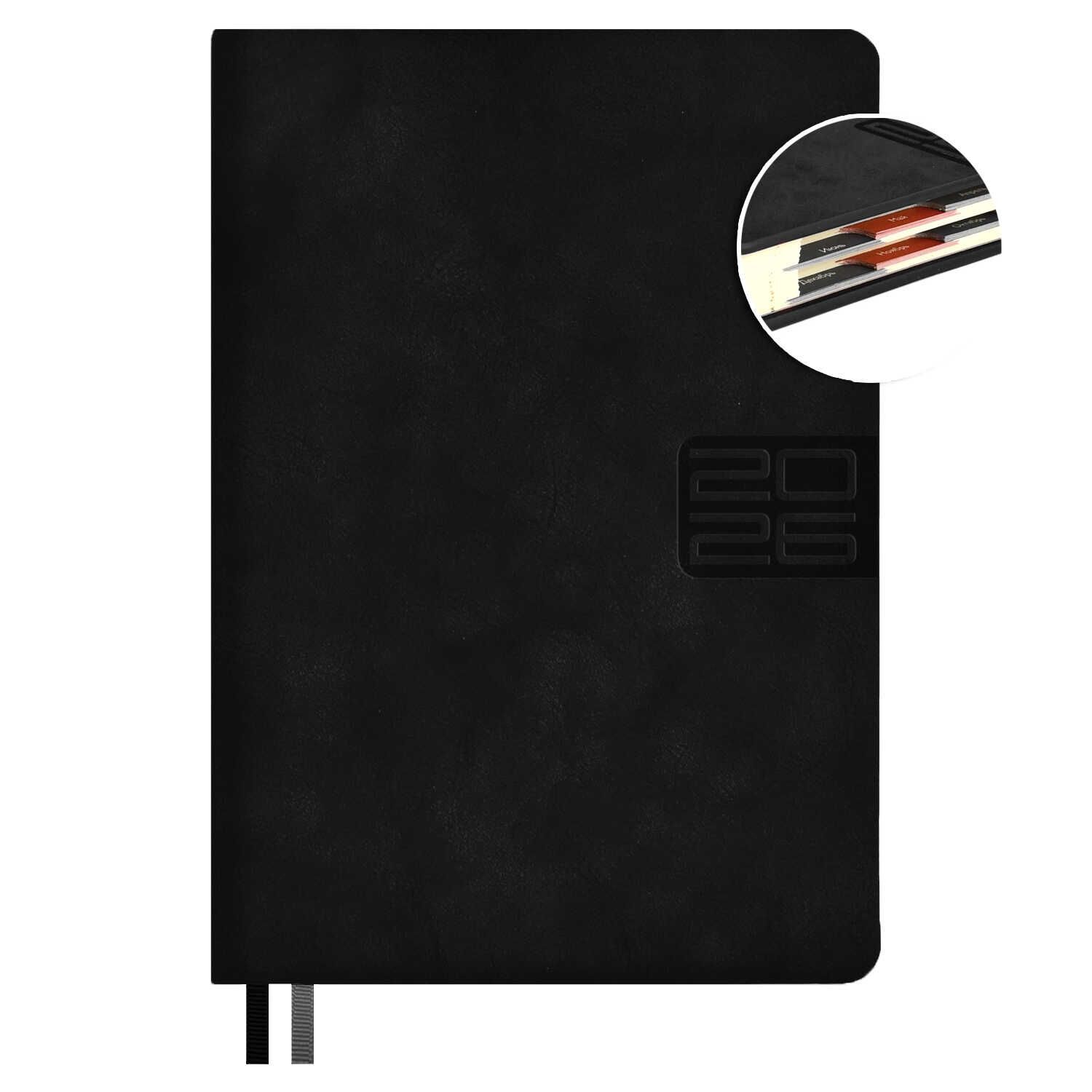 Ежедневник дат. 2026г А5 176л., кожзам, тв.пер. "#Думай как миллиардер. Тиволи глосс черный" вырубка