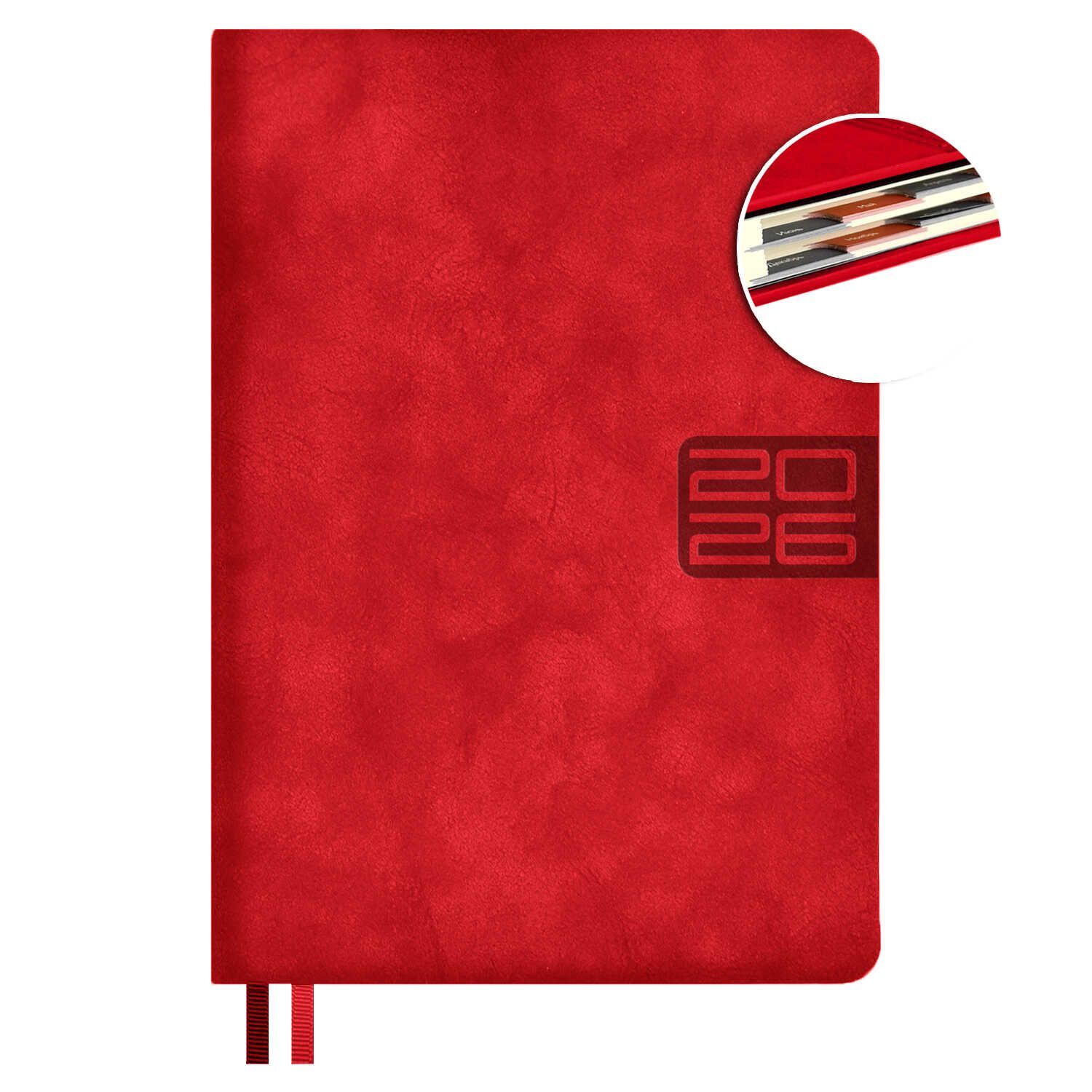 Ежедневник дат. 2026г А5 176л., кожзам, тв.пер. "#Думай как миллиардер. Тиволи глосс красный"выруб