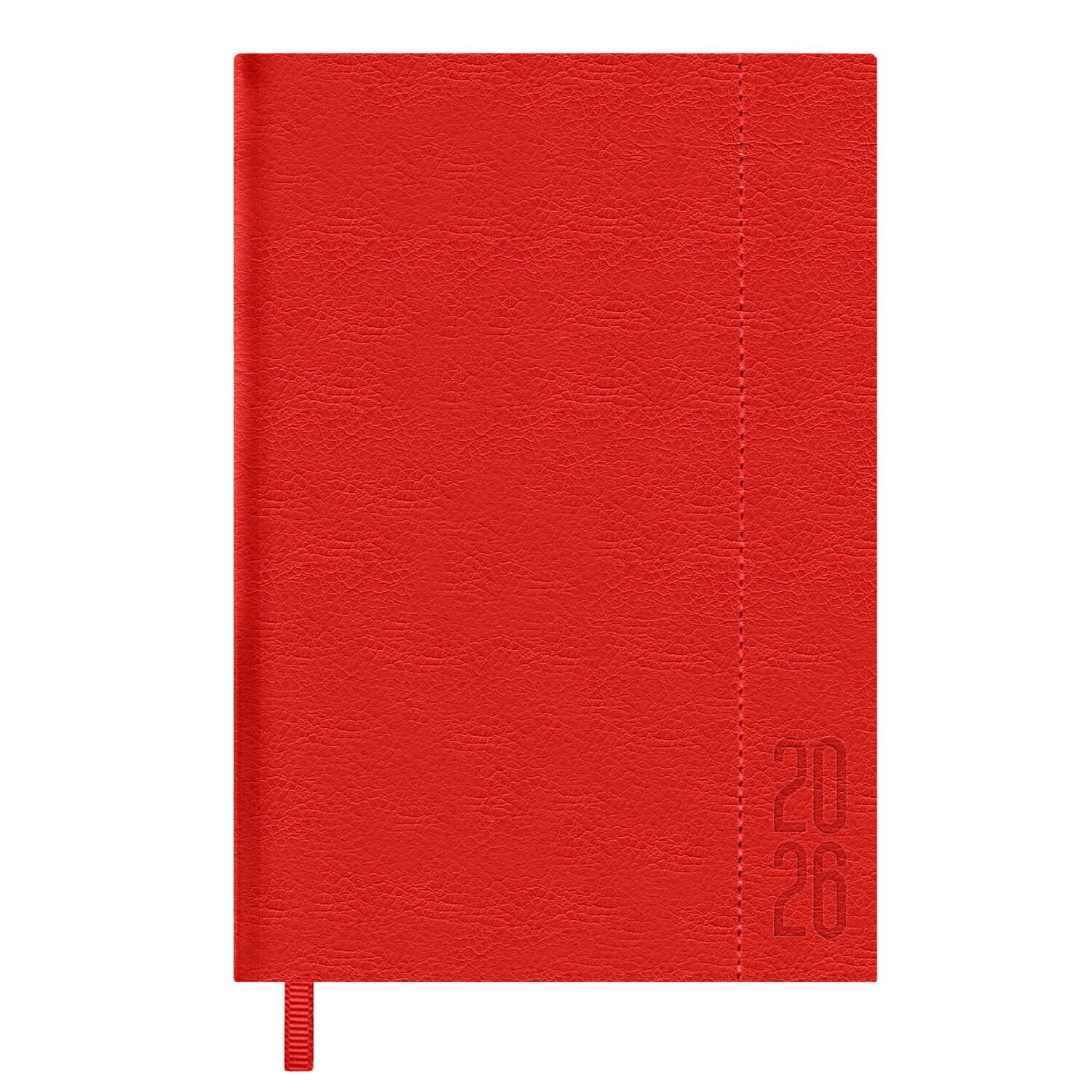 Ежедневник дат. 2026г А5 176л., кожзам, тв.пер. "Наппа. Красный" блинт.тисн., ляссе