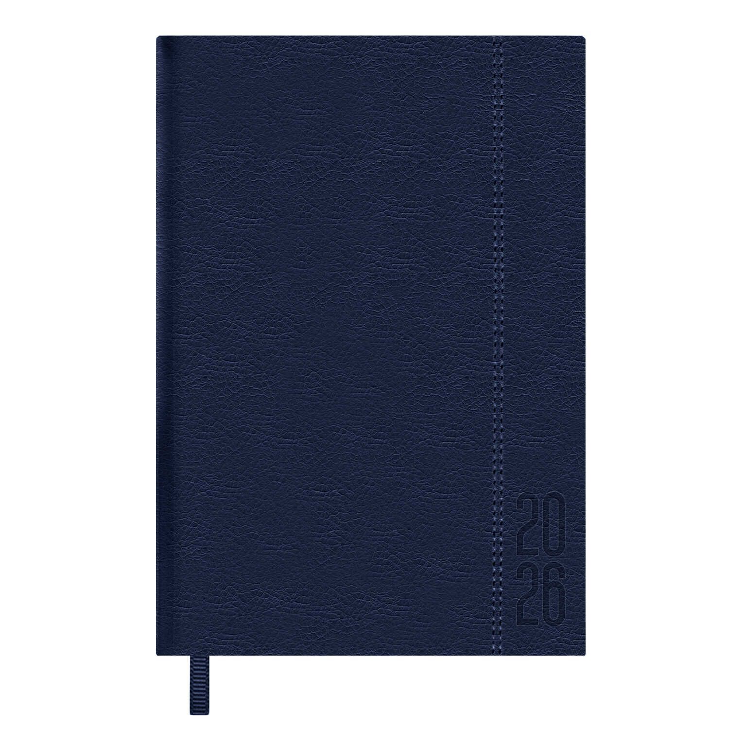 Ежедневник дат. 2026г А5 176л., кожзам, тв.пер. "Наппа. Синий" блинт.тисн., ляссе