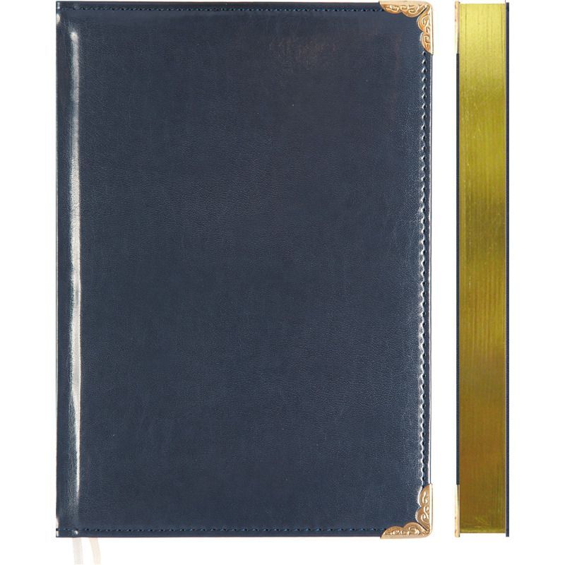 Ежедневник датированный 2026 "deVENTE. Bellagio" A5 (145 ммx205 мм) 336 стр, белая бумага 70 г/м² с золотым срезом, печать в 2 краски, твердая обложка из искусственной кожи с поролоном, отстрочка, термо тиснение, металлические уголки, перфорация, 2 ляссе, в подарочной коробке, синий
