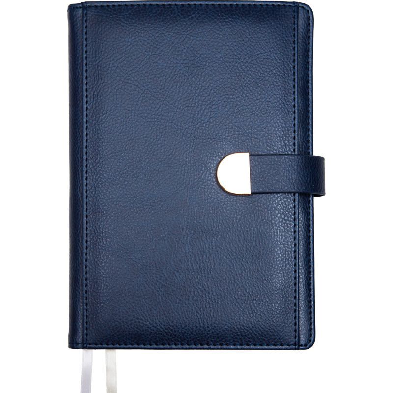 Ежедневник датированный 2026 "deVENTE. Denver" A5 (145 ммx205 мм) 336 стр, кремовая бумага 70 г/м², печать в 2 краски, твердая обложка из искусственной кожи с поролоном, карман для телефона и визиток, магнитная застежка, отстрочка, термо тиснение, перфорация, закругленные уголки, 2 ляссе, в подарочной коробке, синий