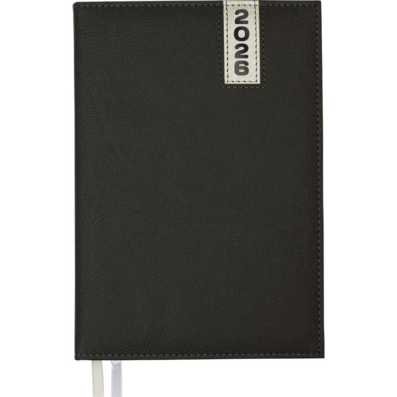 Ежедневник датированный 2026 "deVENTE. Vertical" A5 (145 ммx205 мм) 336 стр, белая бумага 70 г/м², печать в 2 краски, твердая обложка из искусственной кожи с поролоном, отстрочка, термо тиснение, перфорация, 2 ляссе, в термоусадочной пленке, черный