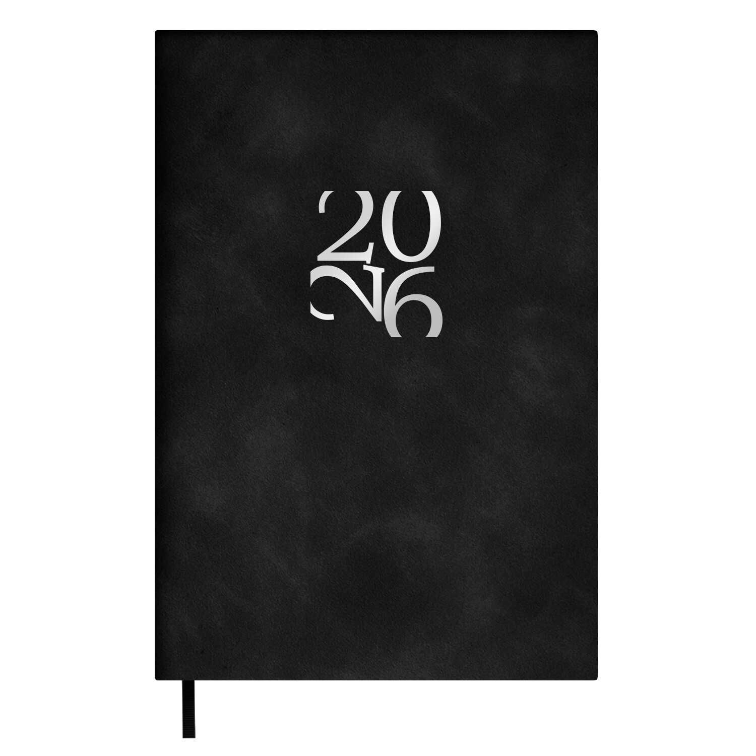 Ежедневник дат. 2026г А6 120л., кожзам, мягк.пер. "Бейбискин черный" тисн.фольгой, ляссе