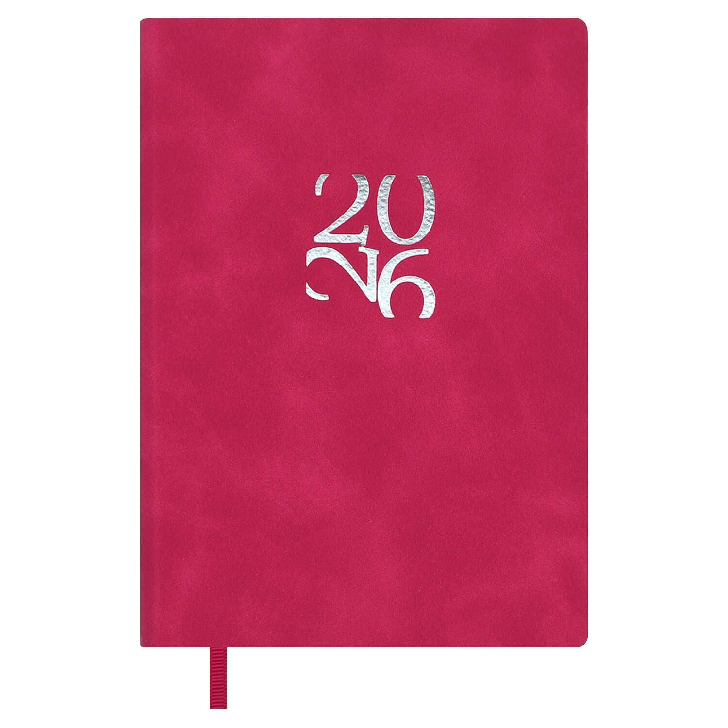 Ежедневник дат. 2026г А6 120л., кожзам, мягк.пер. "Бейбискин малиновый" тисн.фольгой, ляссе