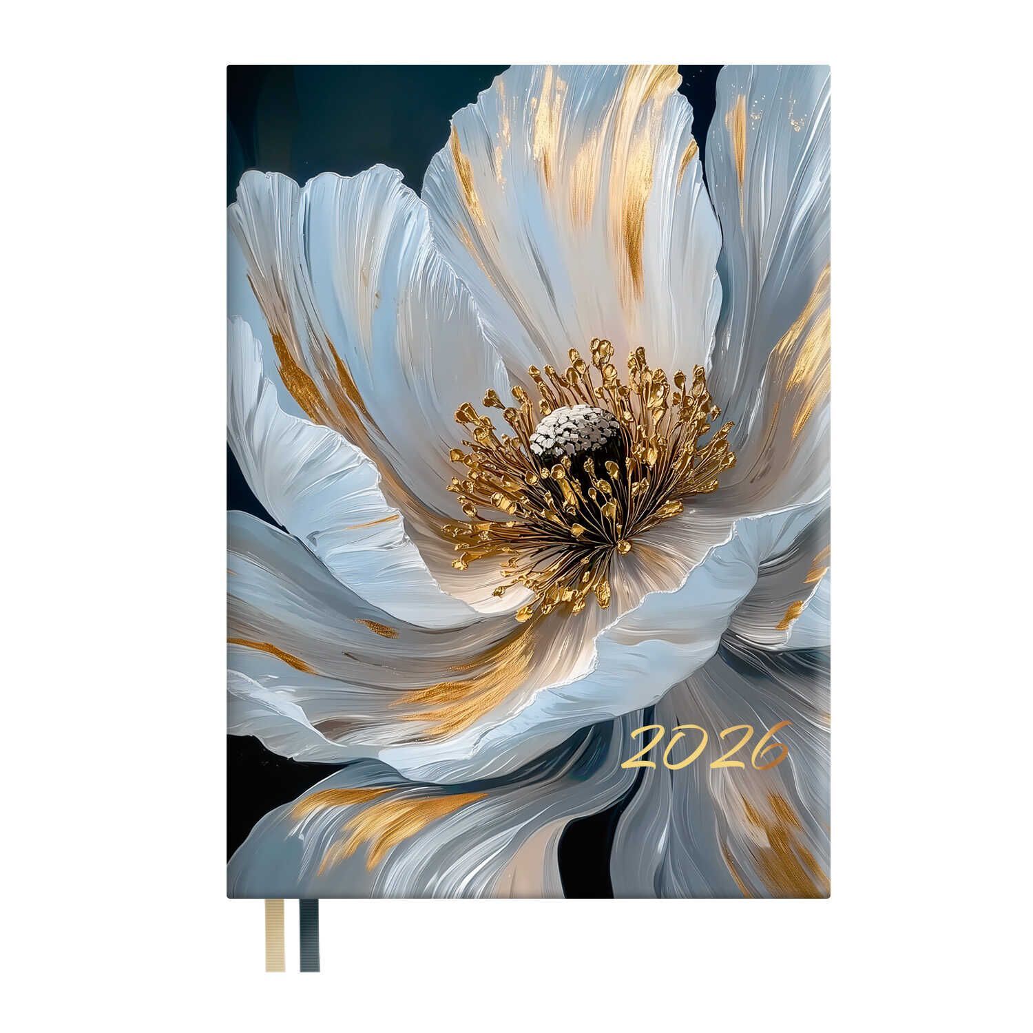 Ежедневник дат. 2026г А6 176л., кожзам, мягк.пер. "Белый мак" тисн.фольгой, ляссе