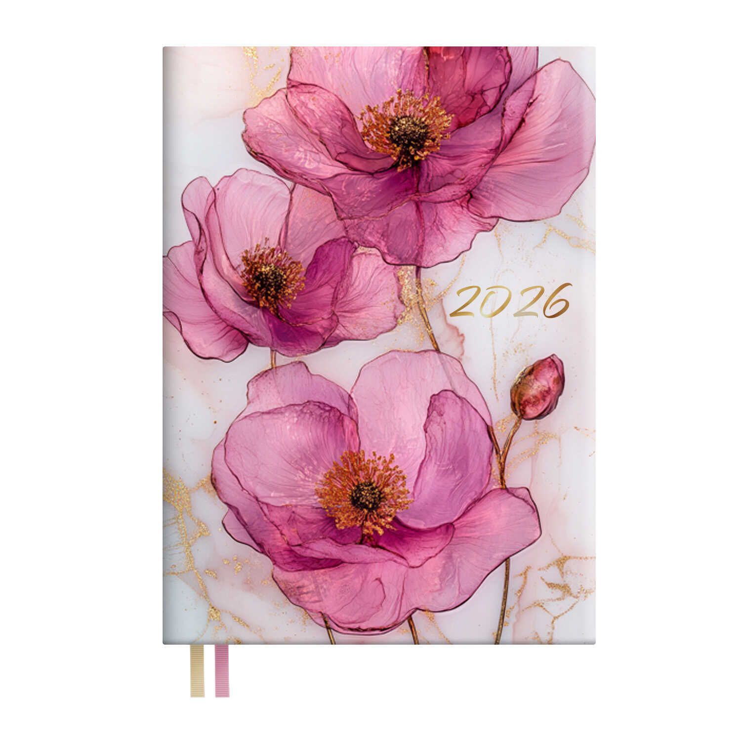 Ежедневник дат. 2026г А6 176л., кожзам, мягк.пер. "Розовый мак" тисн.фольгой, ляссе