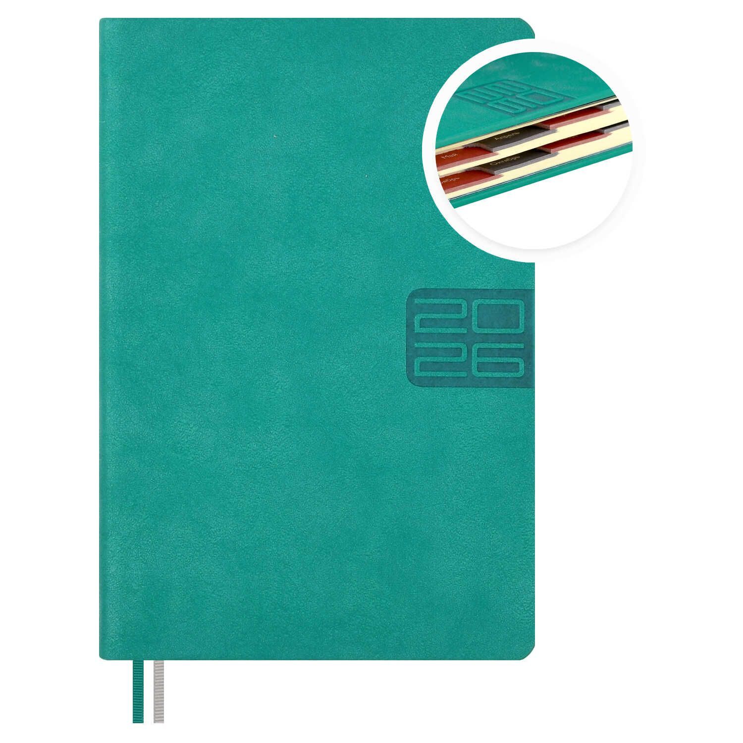 Ежедневник дат. 2026г А6 176л., кожзам, тв.пер. "#Думай как миллиардер. Тиволи глосс бирюзовый"выруб