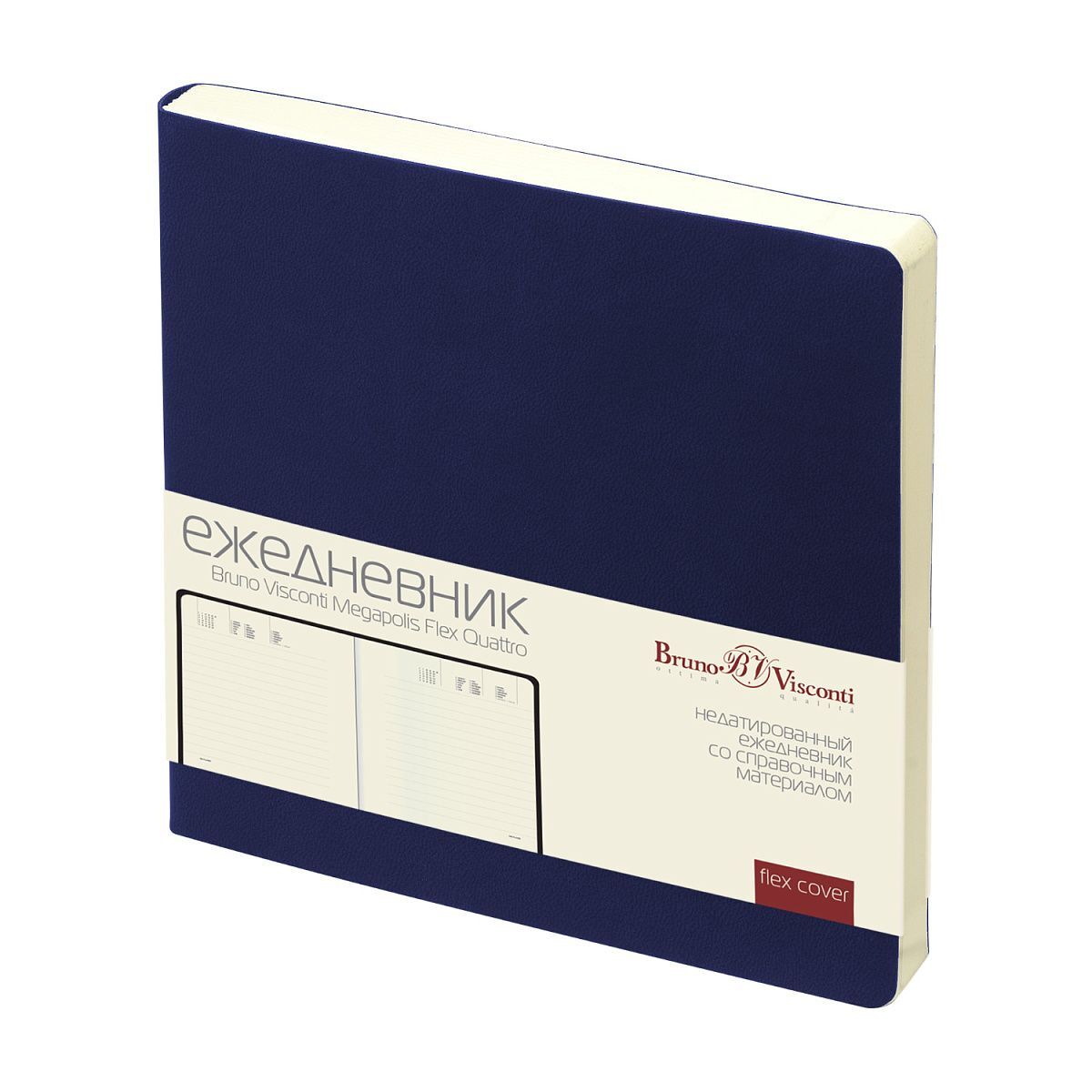 Ежедневник недат. 145*145мм 136л., мягк.пер., иск.кожа "Megapolis Quattro flex. Темно-синий"софт тач