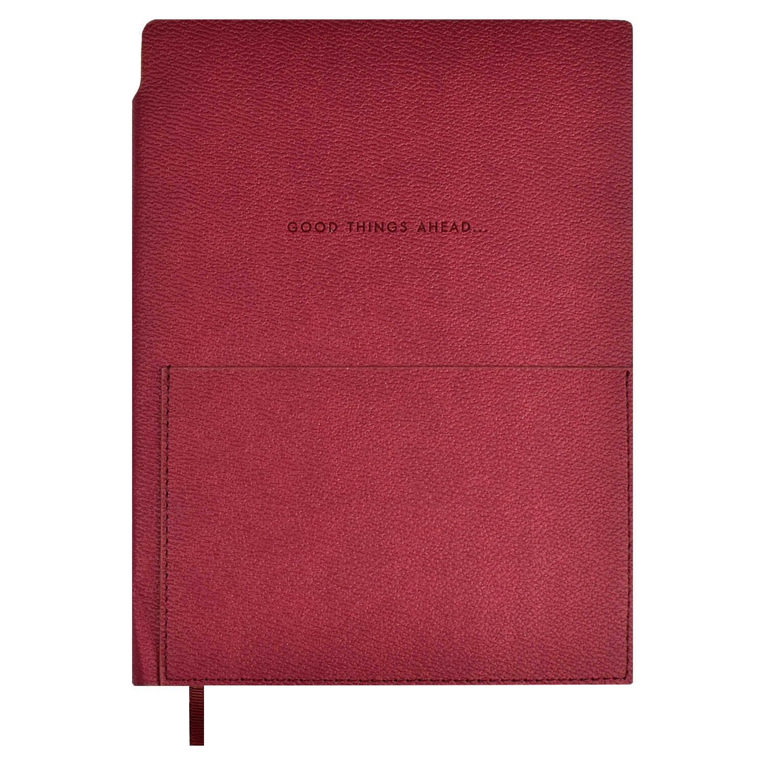 Ежедневник недатированный ESCALADA, А5, 120 л., арт. 67259/ 15 НАППА БОРДОВЫЙ (кожзам: 146x211 мм, мягкий переплёт, запаянный край, материал обложки: искусственная кожа "Наппа"; способ крепления блока: ниткошвейный; декор: блинтовое тиснение; вн. блок: 120 л., кремовый офсет 70 г/м², печать в одну краску (линия), справочный материал: есть; перфорация углов блока: нет; закладка/-и: одно ляссе, каптал: есть; форзац: печать пантоном, особенности: карман(-ы) на лицевой части обложки, место для хранения ручки в корешке; персонализация возможна: да; индивидуальная упаковка: ПЭТ-пакет)