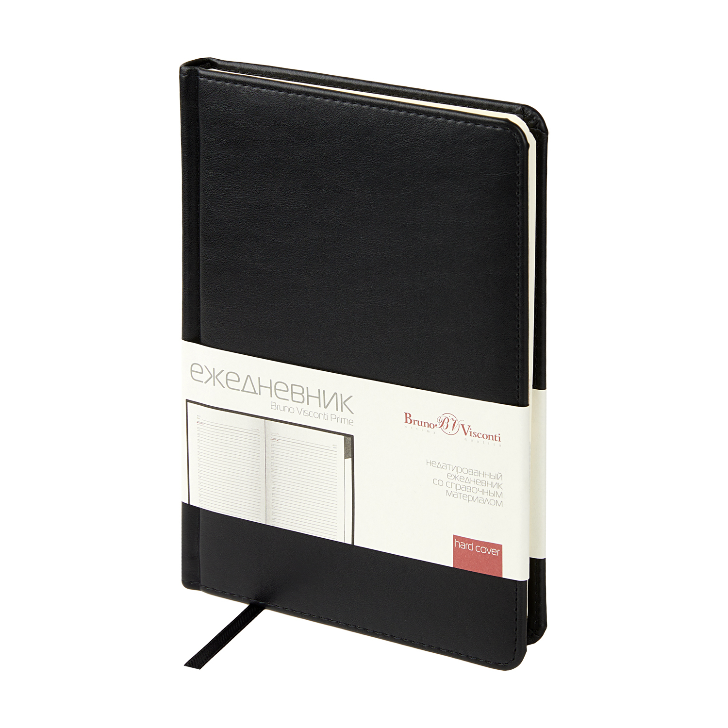 Ежедневник недат. А5 128л., кожзам, тв.обл. "Prime. Черный" вырубка, ляссе