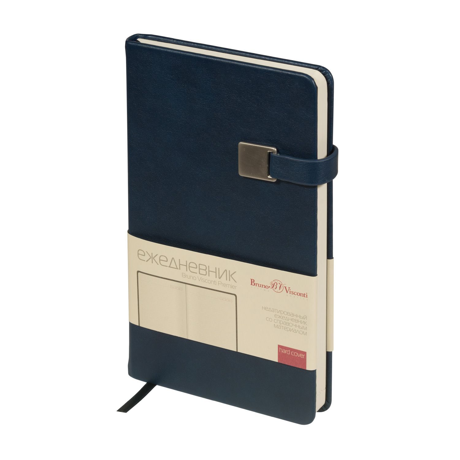 Ежедневник недат. А5 136л., кожзам, тв.пер. "Premier. Темно-синий" магнит.хлястик, ляссе