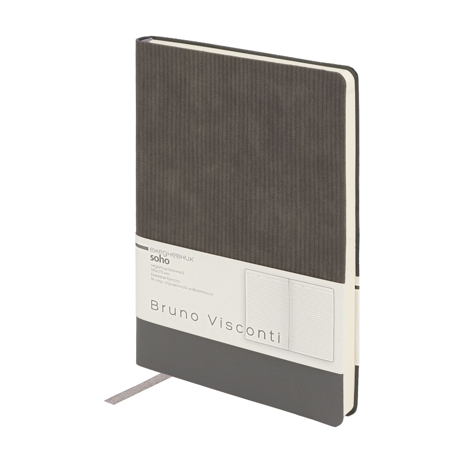 Ежедневник недат. А5 136л., мягк.пер., иск.кожа "Soho. Серый" ляссе