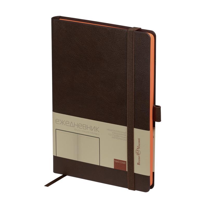 Ежедневник недат. А5 136л., тв.пер., иск.кожа "Monaco. Коричневый" лин., резинка, ляссе