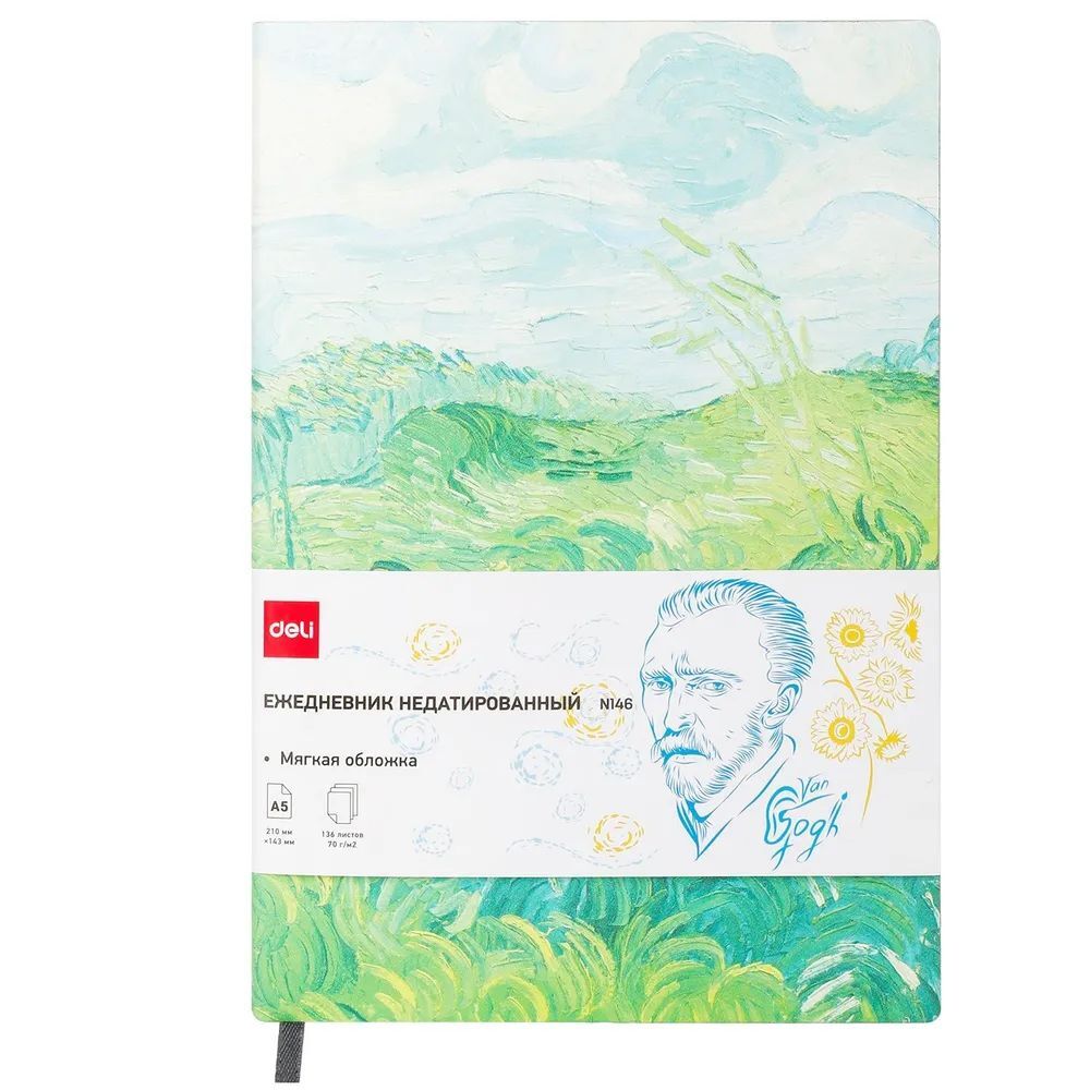 Ежедневник недат А5 136л."Ван Гог "Поле"" кожзам., мяг.пер.