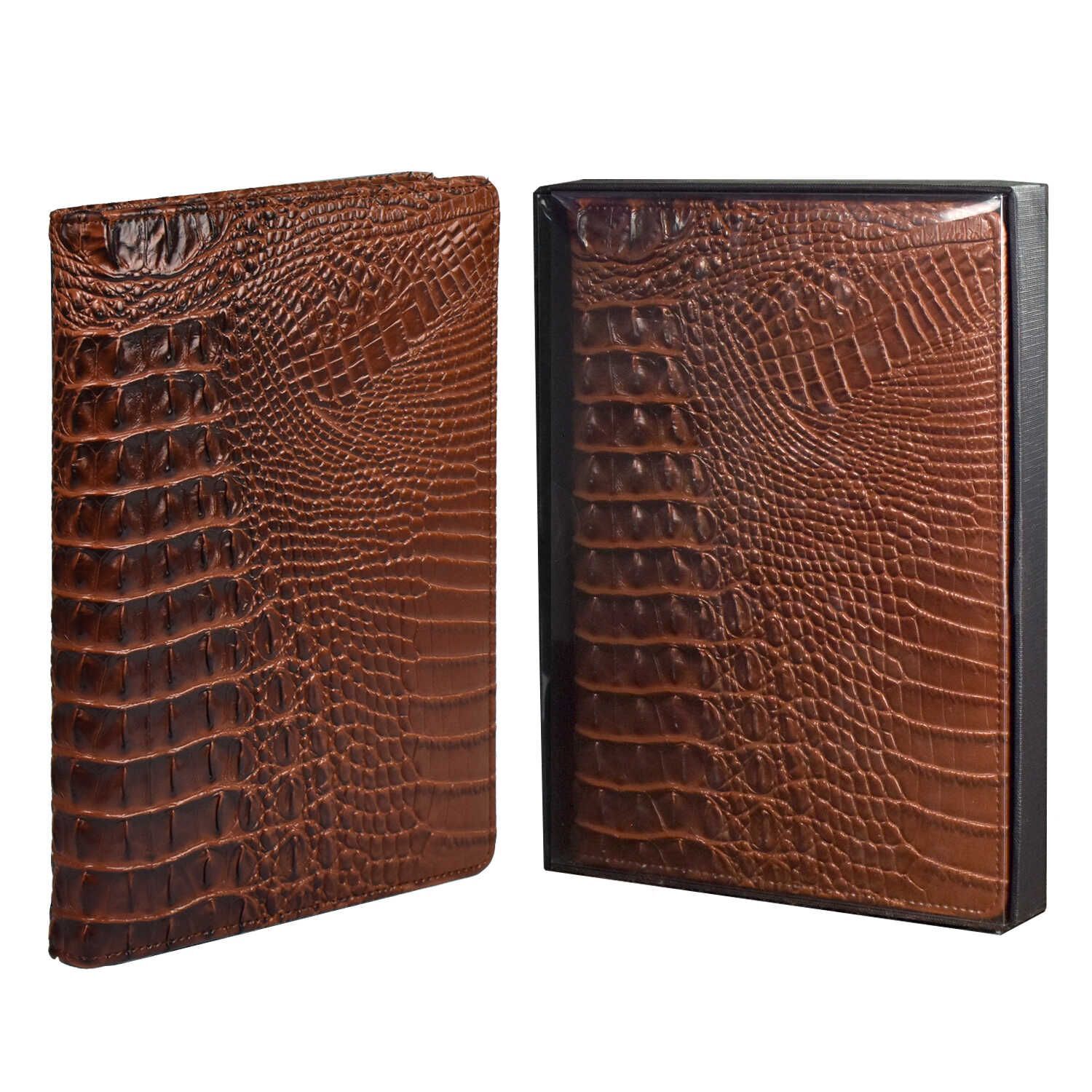 Ежедневник недат. А5+ 160л., кож.зам., тв.пер. "Аллигатор коричневый" тисн. ляссе