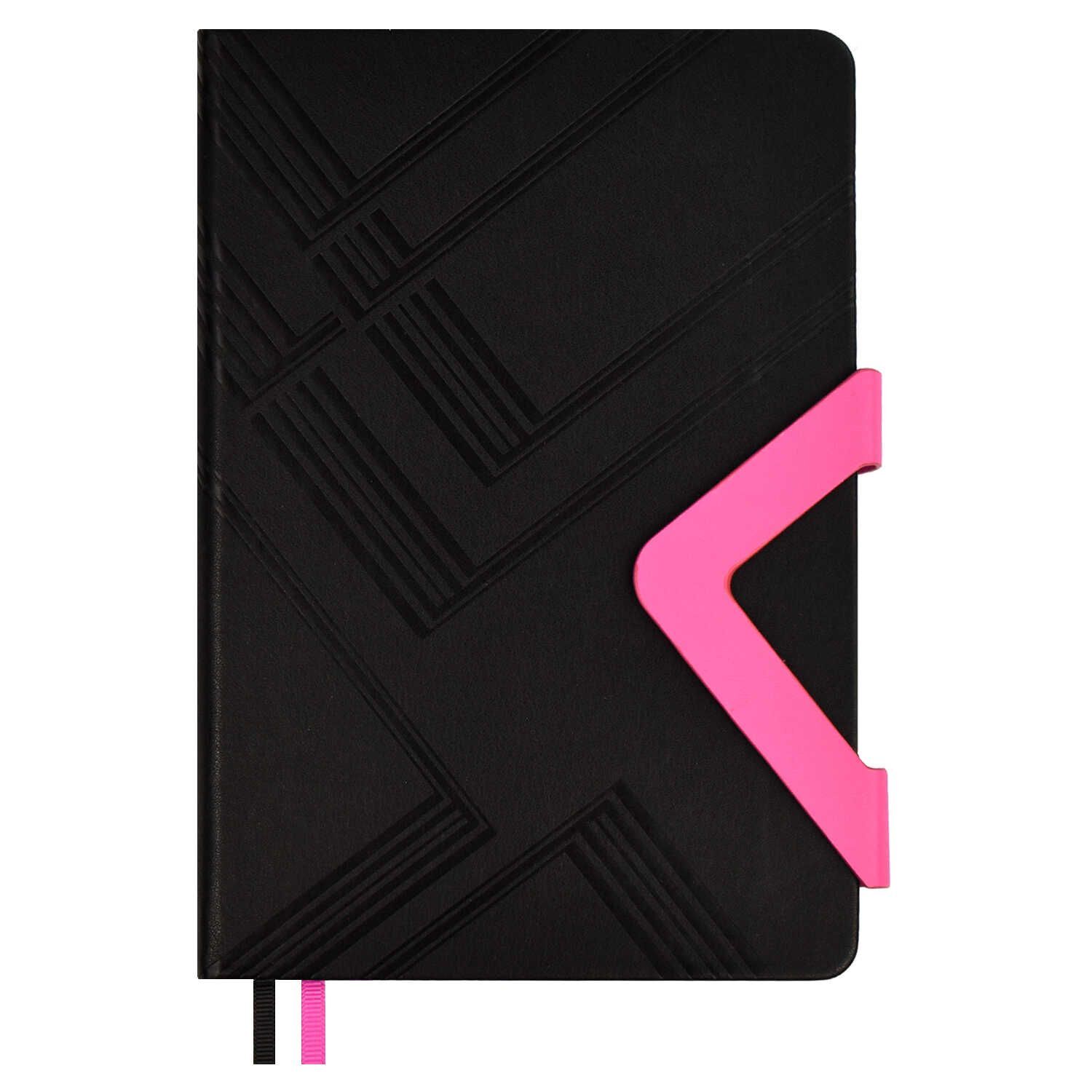 Ежедневник недат. А5 160л., кож.зам., тв.пер. "Плонже Хайпо черный/розовый" ляссе, магнит
