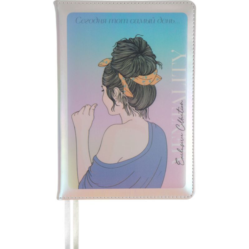 Ежедневник недатированный "deVENTE. Mentality. Сегодня тот самый день" A5 (145 ммx205 мм) 272 стр, кремовая бумага 70 г/м², печать в 2 краски, твердая обложка из искусственной кожи с поролоном, цветная печать, отстрочка, перфорация, закругленные уголки, 2 ляссе, в термоусадочной пленке, белый перламутровый