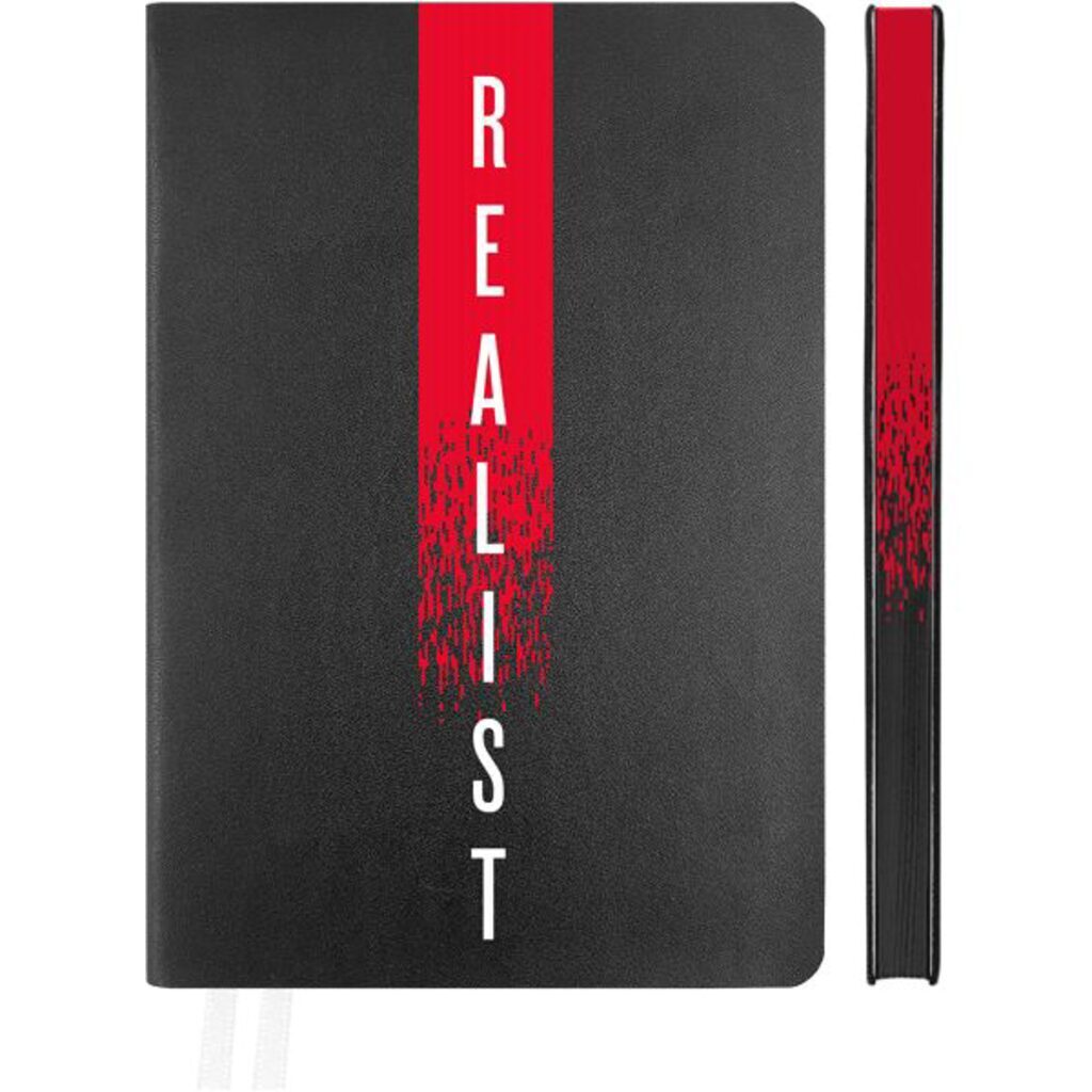 Ежедневник недатированный "deVENTE. Note. Realist" A5 (145 ммx205 мм) 320 стр, белая бумага 70 г/м? с цветным срезом, печать в 2 краски, мягкая обложка из искусственной кожи, шелкография, черный форзац, перфорация, закругленные уголки, 2 ляссе, в термоусадочной пленке, черный