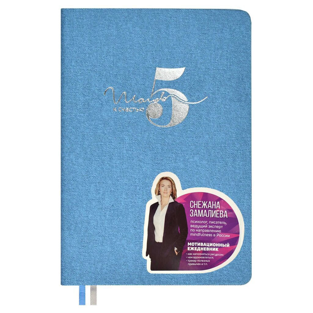 Ежедневник недатированный ESCALADA, формат А5 (146х211 мм), 160 л. Обложка: твёрдый переплёт, тиснение фольгой, нет, прямой корешок, закруглённые углы обложки. Внутренний блок: ниткошвейный, кремовый офсет 70 г/м2, печать в две краски (линия), закруглённые углы блока, нет, есть. Красочность форзаца: печать пантоном. Отделка среза: фольгирование. Закладка: два ляссе. есть. Особенности: в блоке использованы авторские разработки на тему позитивного мышления, гармонии с собой и самоосознанности от преподавателя, спикера, ведущего эксперта по mindfulness-направлению в России – Снежаны Замалиевой. Индивидуальная упаковка: промостикер + ПЭТ-пакет.