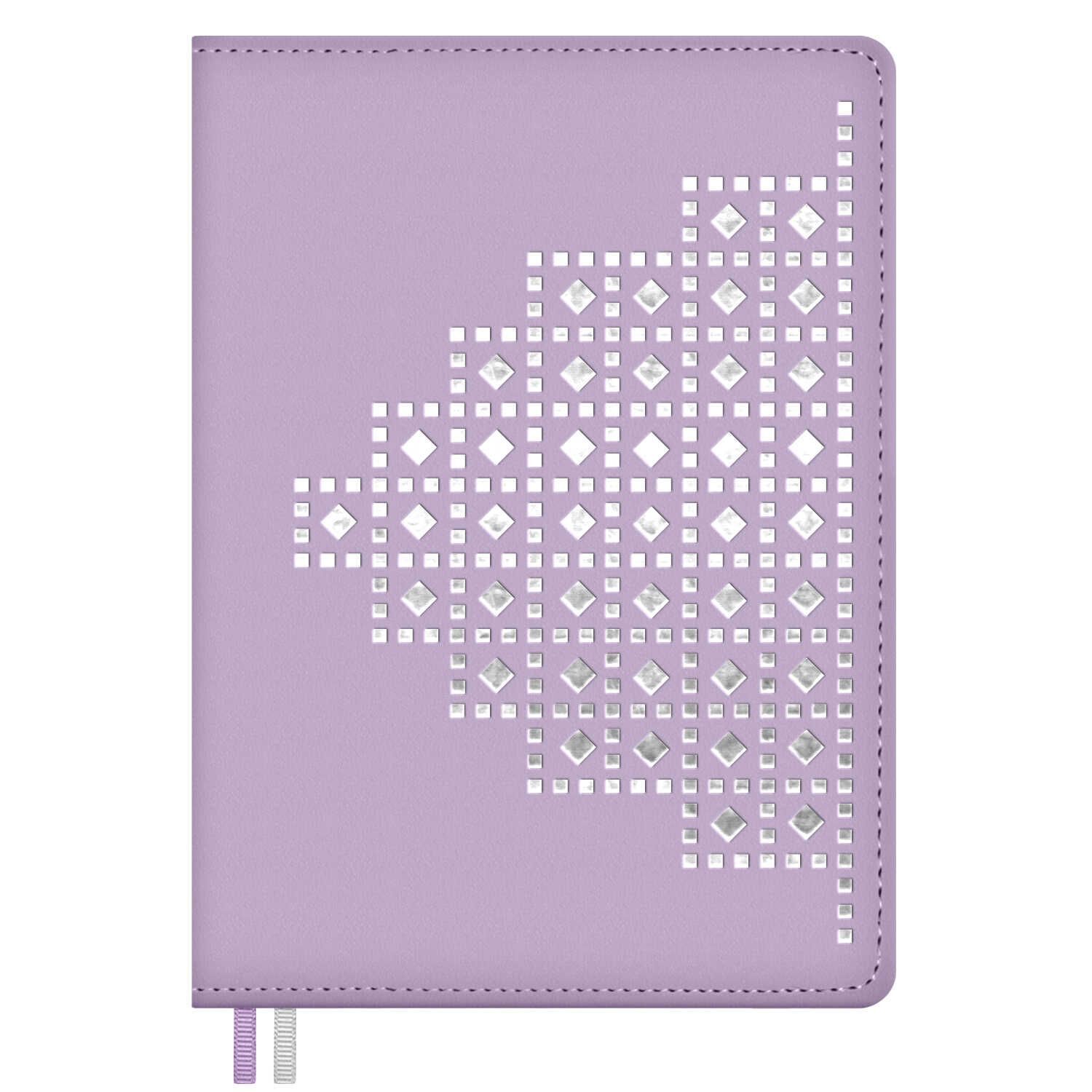 Ежедневник недатированный ESCALADA, А6+, 120 л., арт. 67268/ 20 ПЛОНЖЕ СИРЕНЕВЫЙ (кожзам: 126x174 мм, твёрдый переплёт с поролоном, материал обложки: искусственная кожа "Плонже"; способ крепления блока: ниткошвейный; декор: перфорация + голографическая подложка; вн. блок: 120 л., тонированный офсет 70 г/м², печать в одну краску (линия), справочный материал: есть; перфорация углов блока: нет; отделка среза: окрашивание пантоном; закладка/-и: два ляссе, каптал: есть; форзац: печать пантоном, персонализация возможна: нет; индивидуальная упаковка: ПЭТ-пакет)