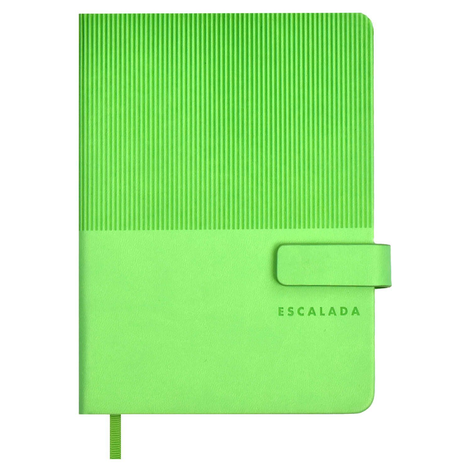 Ежедневник недатированный ESCALADA, А6+, 120 л., арт. 67270/ 20 ВИННЕР САЛАТОВЫЙ (кожзам: 126х174 мм, твёрдый переплёт, материал обложки: искусственная кожа "Виннер"; способ крепления блока: ниткошвейный; декор: блинтовое тиснение; вн. блок: 120 л., кремовый офсет 70 г/м², печать в одну краску (линия), справочный материал: есть; перфорация углов блока: нет; закладка/-и: одно ляссе, каптал: есть; форзац: печать пантоном, особенности: застёжка "магнитный клапан"; персонализация возможна: да; индивидуальная упаковка: ПЭТ-пакет)