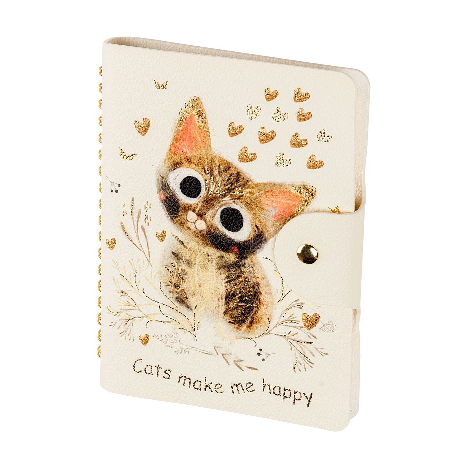 Ежедневник недат. А6 136л., кожзам, мягк.обл., гребень "Love me. Милый котик" магнит.хлястик