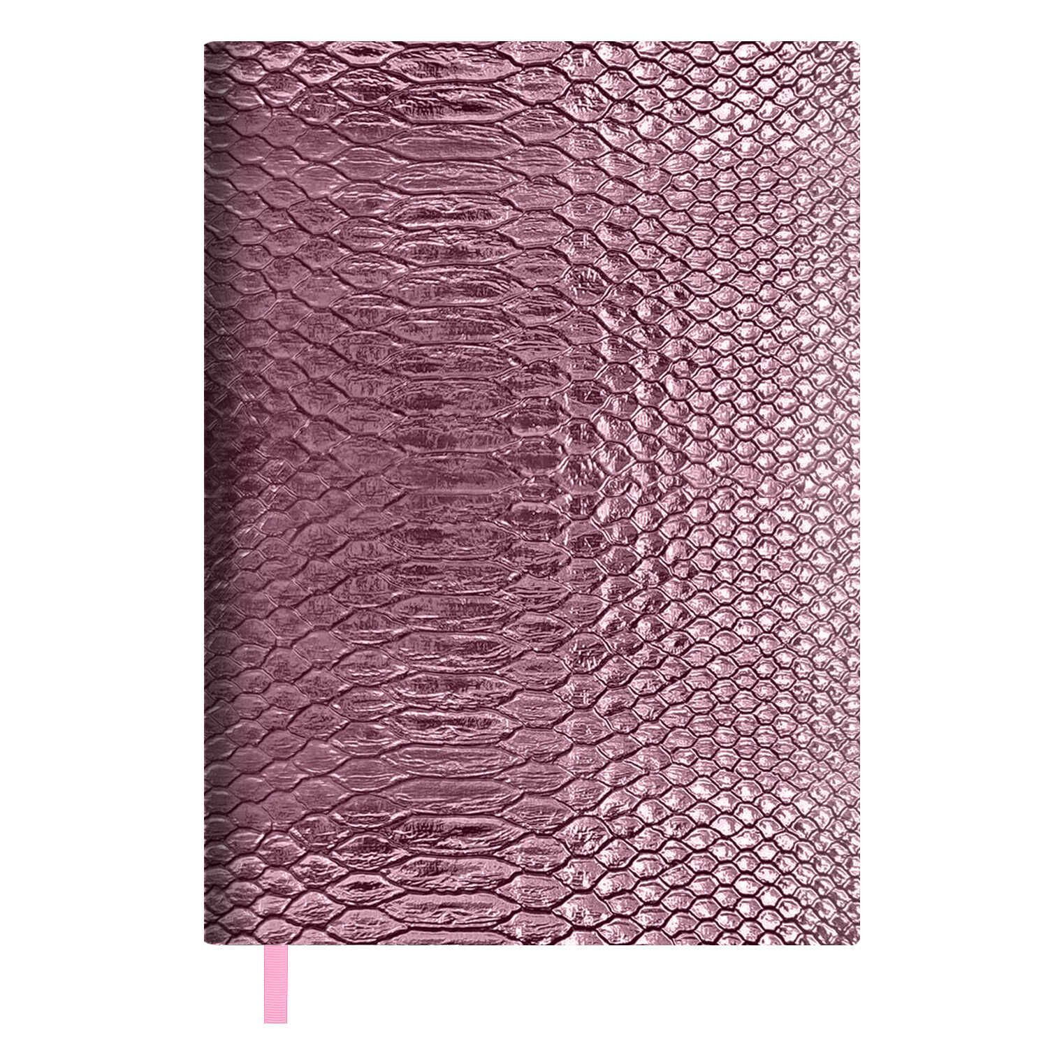 Ежедневник недат. А6+ 160л., кож.зам., мягк.пер. "Анаконда металлик розовая" ляссе