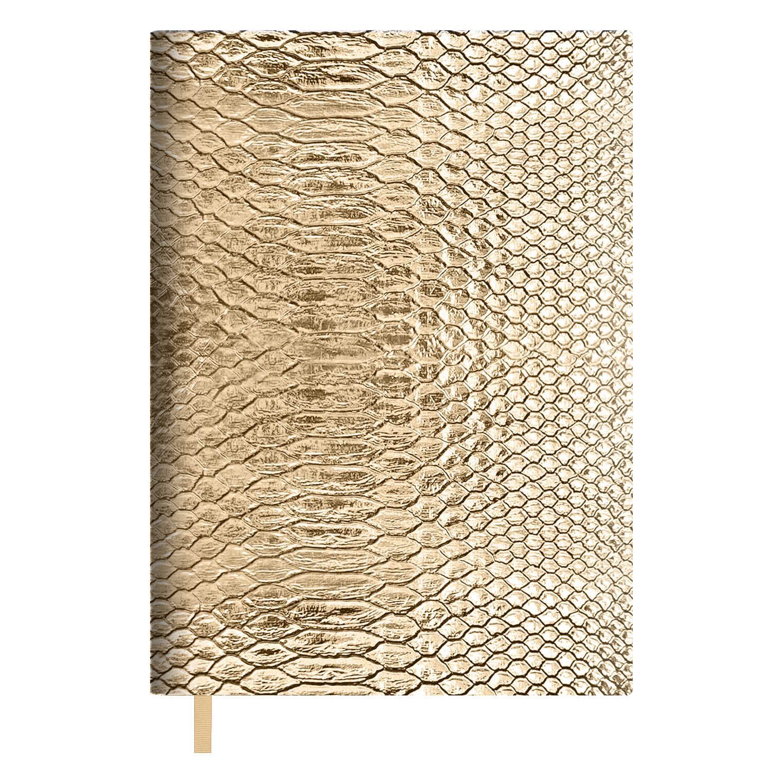 Ежедневник недат. А6+ 160л., кож.зам., мягк.пер. "Анаконда металлик золотая" ляссе