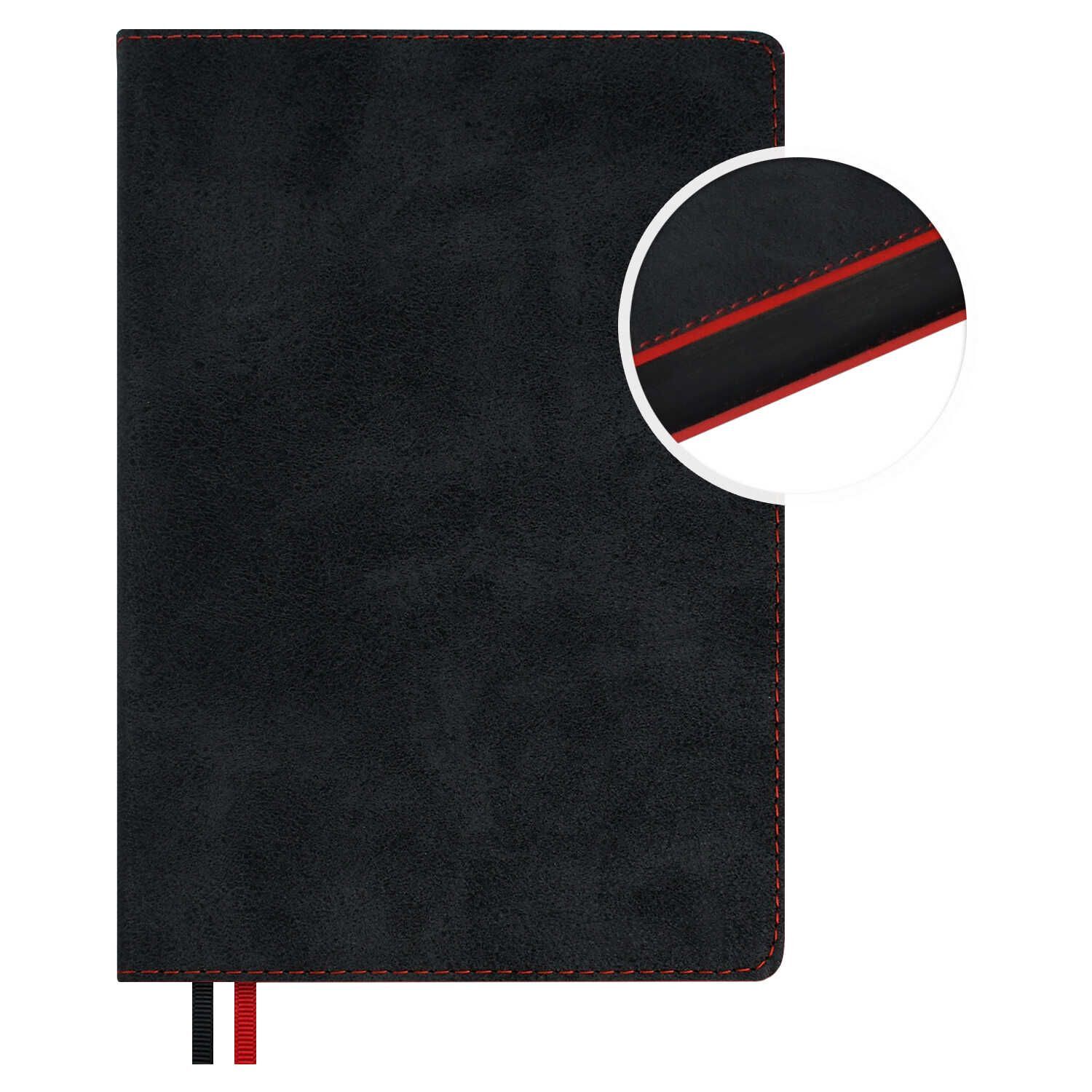 Ежедневник полудат. А5 192л. кожзам, тв.пер. "Тиволи делавэ черный/красный" ляссе