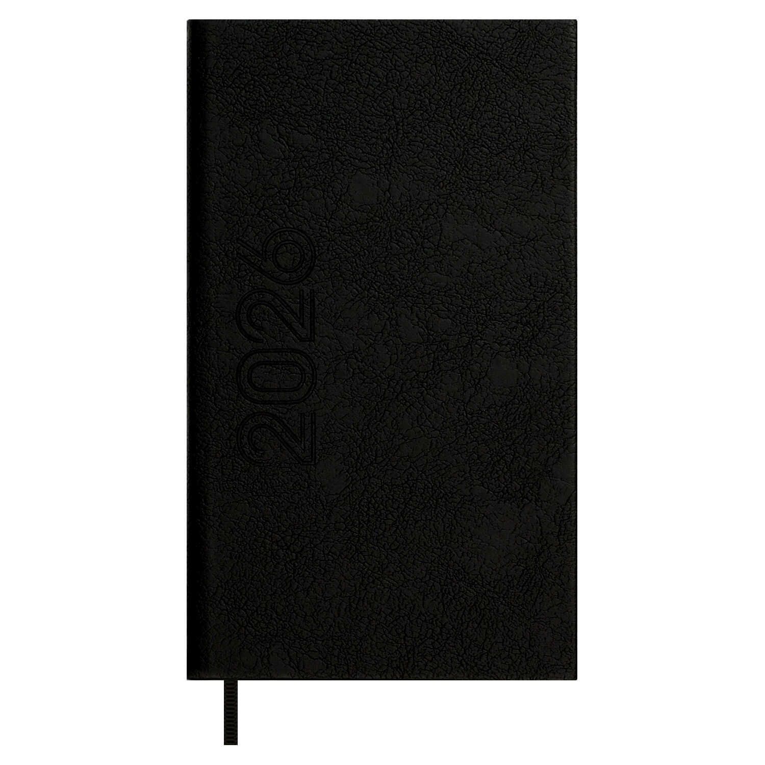 Еженедельник дат. 2026г 85*145мм 64л., кожзам., тв.пер. "Лозанж черный" блинт.тисн, ляссе