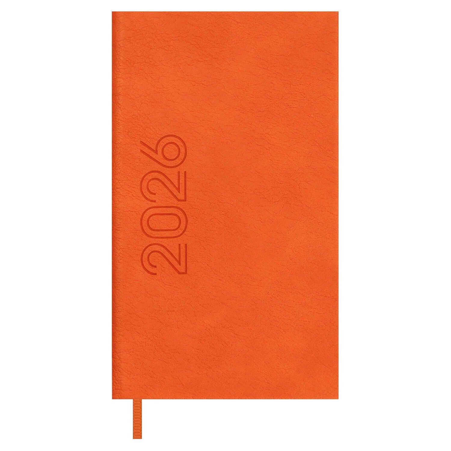 Еженедельник дат. 2026г 85*145мм 64л., кожзам., тв.пер. "Лозанж оранжевый" блинт.тисн, ляссе