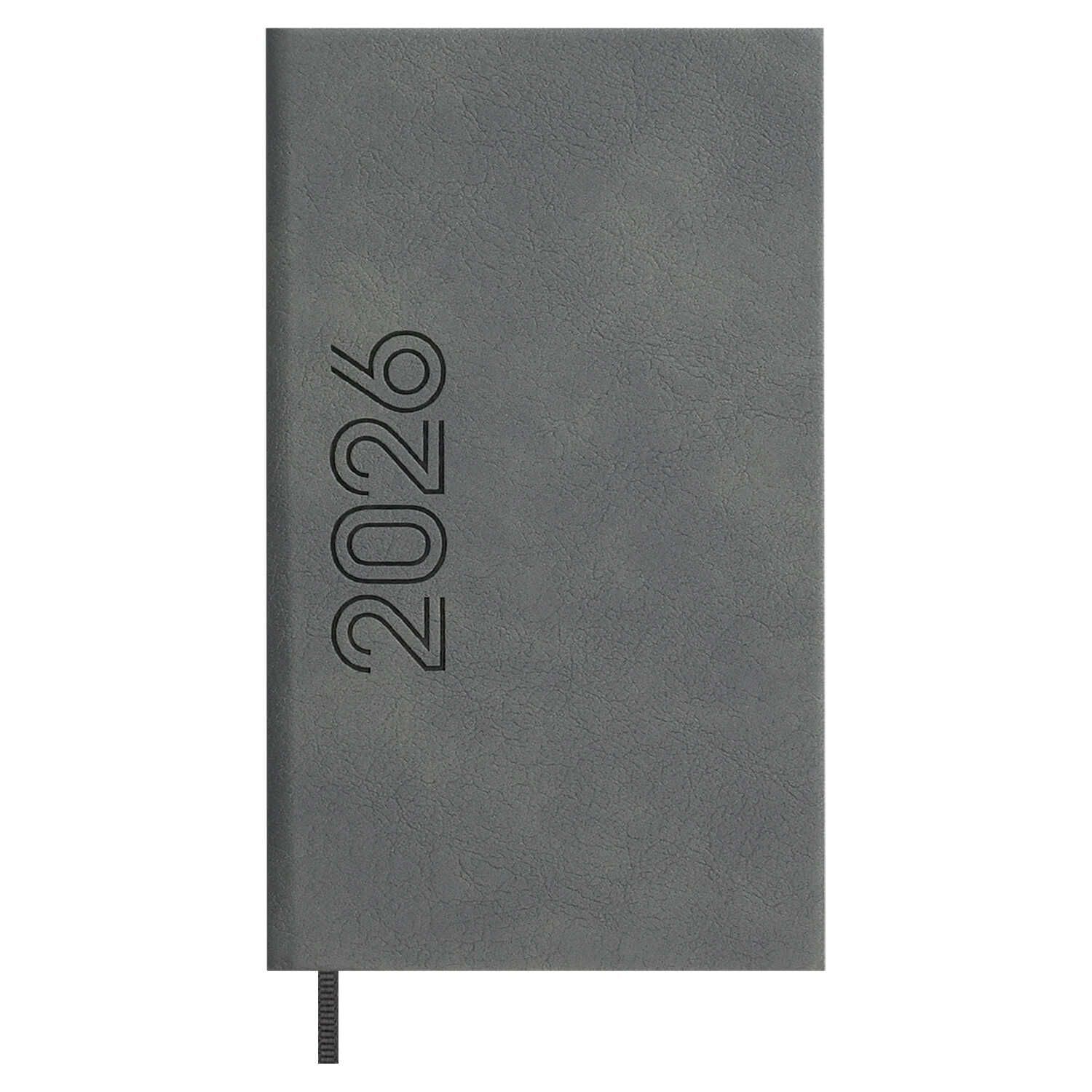 Еженедельник дат. 2026г 85*145мм 64л., кожзам., тв.пер. "Лозанж серый" блинт.тисн, ляссе