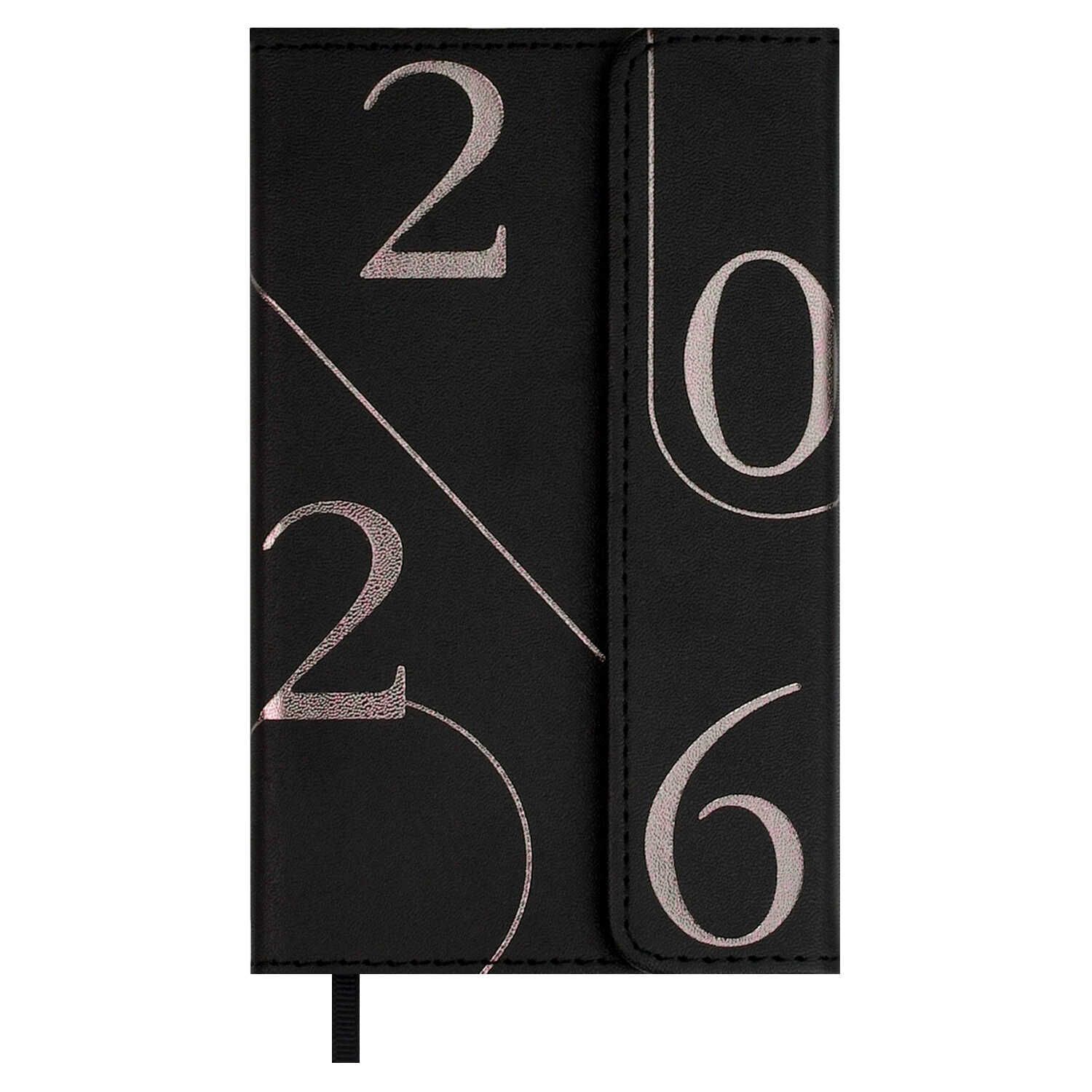 Еженедельник дат. 2026г 95*155мм 64л., кожзам., тв.пер. "Кассандра черный" тисн.фольгой, ляссе