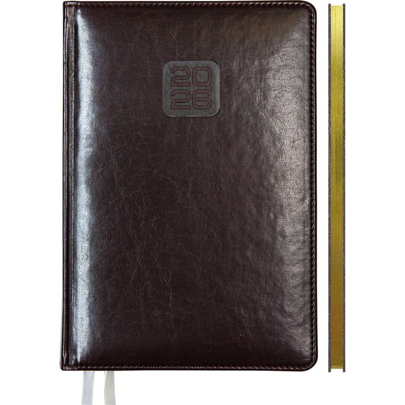 Еженедельник датированный 2026 "deVENTE. Bravo" A4 (210 ммx290 мм) 128 стр, белая бумага 70 г/м² с золотым срезом, печать в 2 краски, твердая обложка из искусственной кожи с поролоном, отстрочка, термо тиснение, перфорация, закругленные уголки, 2 ляссе, в термоусадочной пленке, бордовый