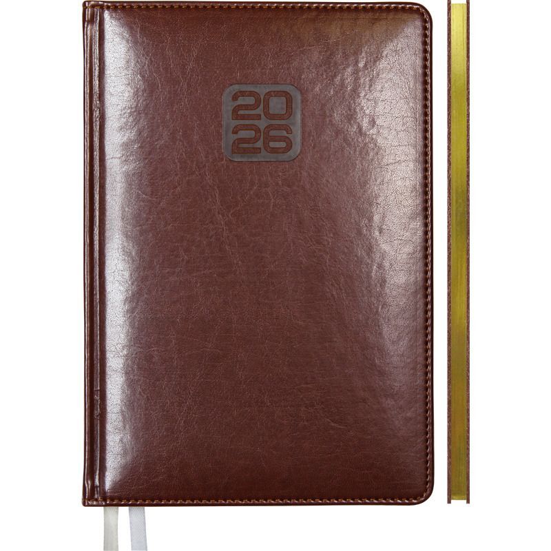 Еженедельник датированный 2026 "deVENTE. Bravo" A4 (210 ммx290 мм) 128 стр, белая бумага 70 г/м² с золотым срезом, печать в 2 краски, твердая обложка из искусственной кожи с поролоном, отстрочка, термо тиснение, перфорация, закругленные уголки, 2 ляссе, в термоусадочной пленке, коричневый