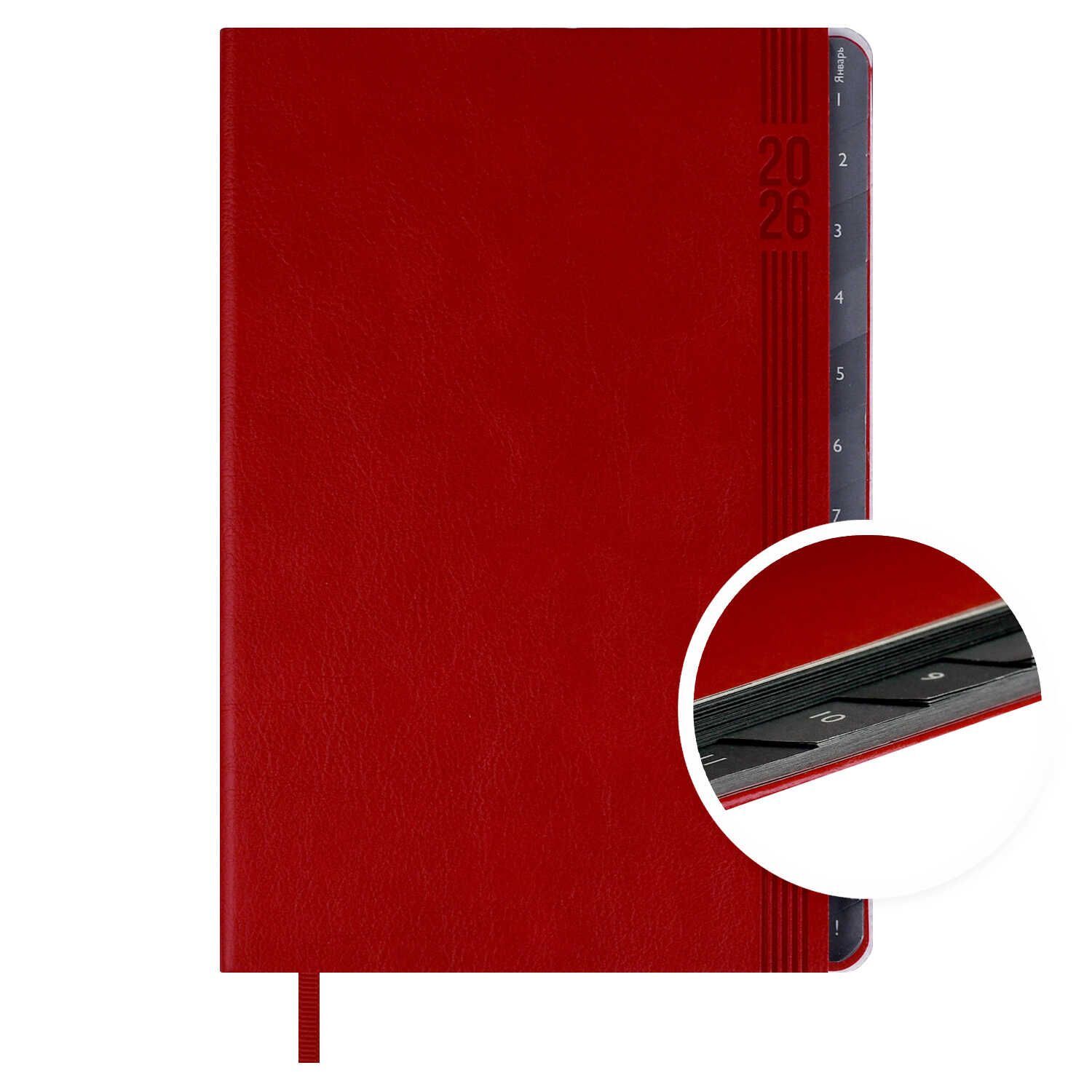 Еженедельник дат. 2026г А5 80л., кожзам., мягк.пер. "Буйвол красный" вырубка, ляссе