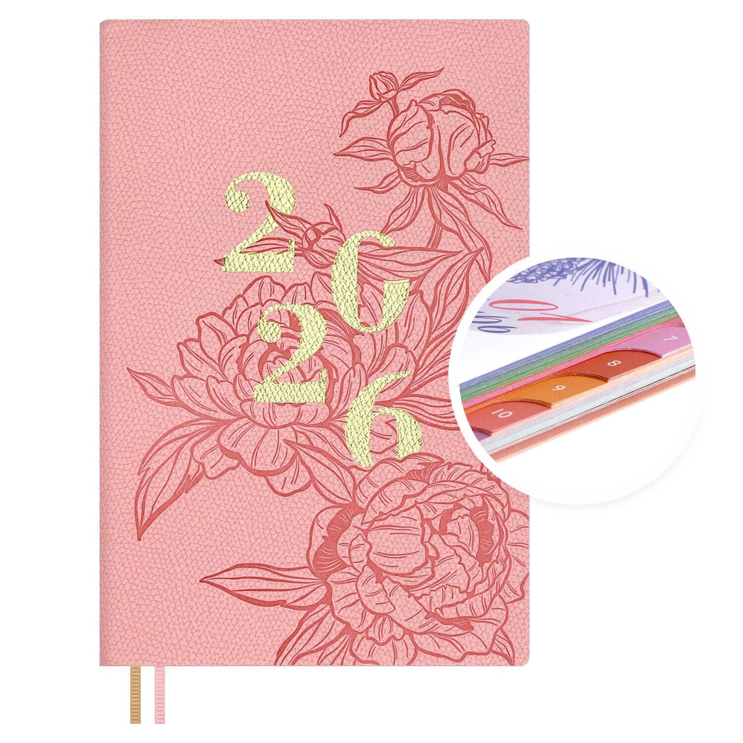 Еженедельник дат. 2026г А6 96л., кожзам., мягк.пер. "Джут розовый" тисн.фольгой, вырубка, ляссе