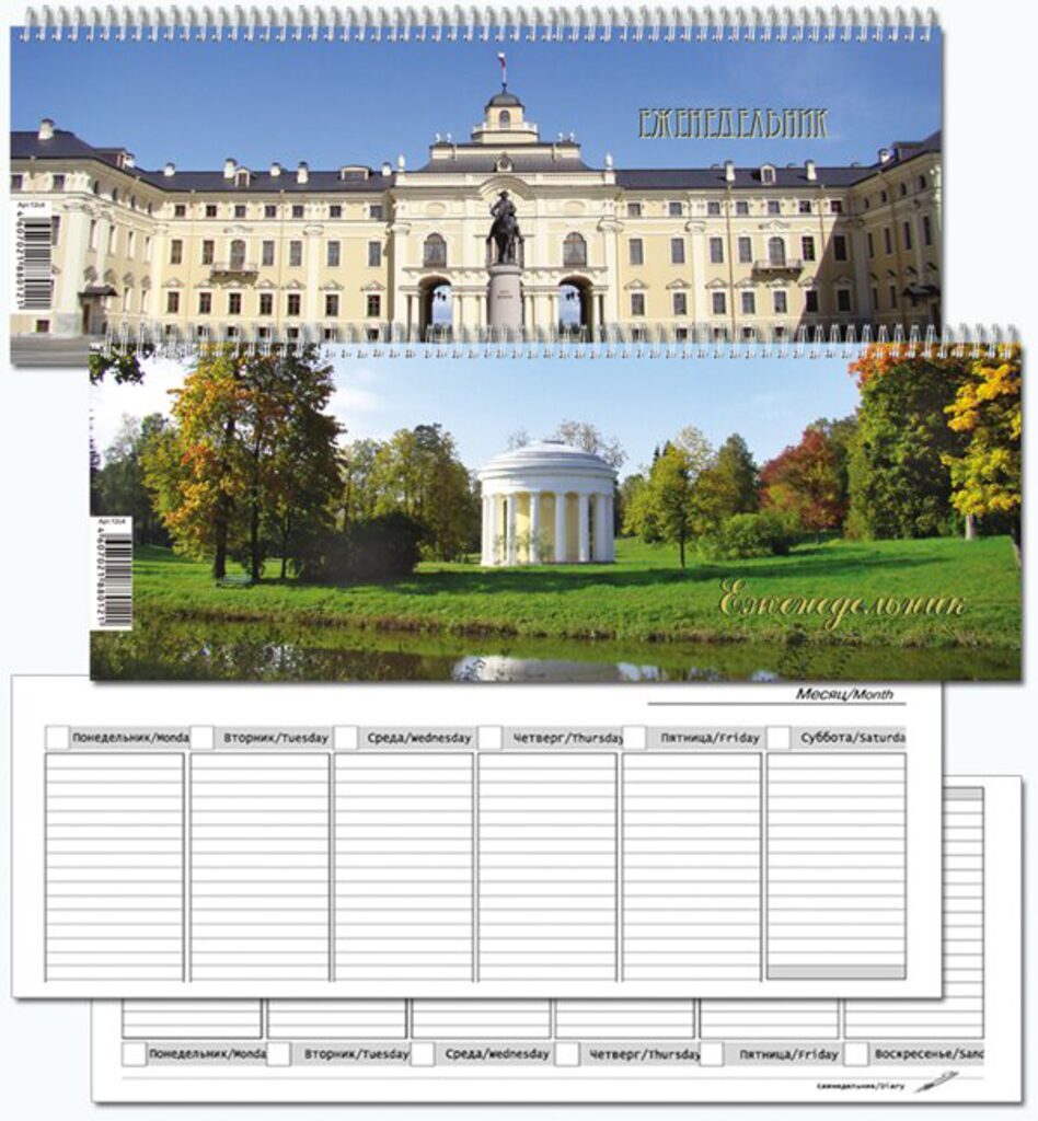Еженедельник недат. 100*295мм 56л., гребень "Ассорти" мел.картон