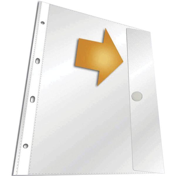 Файл с перфорацией A4 (243x310 мм), 140 мкм, 4 отв., ПВХ с клапаном на кнопке, глянцевые