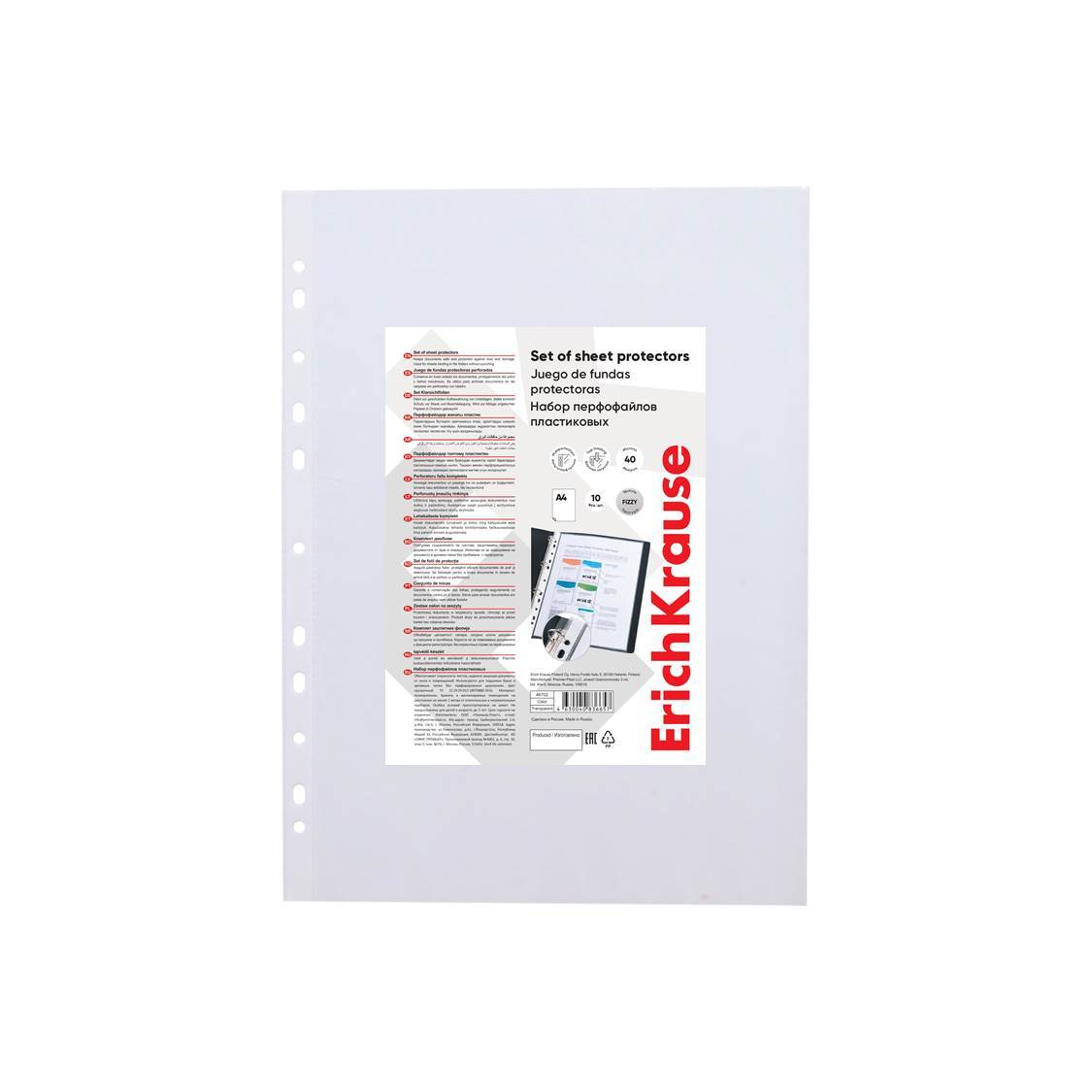 Файл с перфорацией А4 Fizzy Clear 40мкм/ 10 шт/уп., тиснение