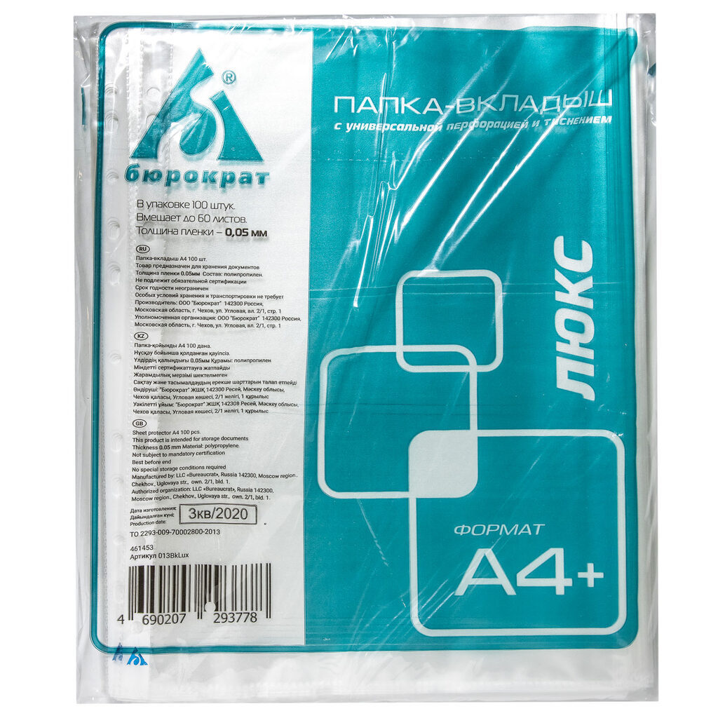 Файл с перфорацией А4+ люкс тисн. / 0,05мм / 100 шт/уп., тиснение